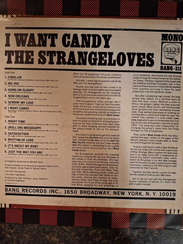 The Strangeloves I Want Candy Vinyl LP Mono Bang 211 1965