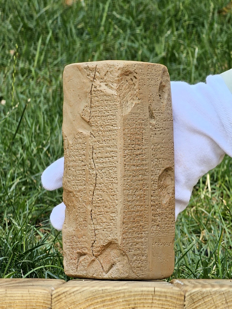 I create original replicas of ancient artifacts, particularly clay tablets, which are not museum photographs but crafted by me. When you place an order, it will be shipped to your address within approximately one week. Feel free to reach out for custom orders and projects. Thank you. One of the most intriguing artifacts from ancient Sumerian cities in Iraq is the Sumerian King List, a historical record of Sumerian kings. It blends mythical and historical rulers, dating back 4,000 years. Various versions of this list have been discovered, including the Weld-Blundell prism in the Ashmolean Museum, Oxford. This prism is the most extensive and complete version, tracing rulers from antediluvian dynasties to the Isin Dynasty. It provides valuable insights into the history of Sumer and parallels with Genesis. Sumer, the earliest known civilization, was located in southern Mesopotamia. It consisted of several city-states, each with its own deity and kingship institution. The Sumerian King List begins with the origin of kingship as a divine institution, featuring rulers with exceptionally long reigns. Some of these early rulers are mythical figures like Etana, Lugal-banda, and Gilgamesh, known for their heroic deeds. WHD: 7x7x18.5 CM. **Note:** Please be aware that the tablets we sell are replicas, and slight variations in lettering, as well as color tones, may exist due to the replication process. These differences contribute to the uniqueness of each replica, ensuring its distinction from the original artifacts. We strive to capture the essence of the ancient tablets while providing you with a faithful representation. Thank you for understanding!