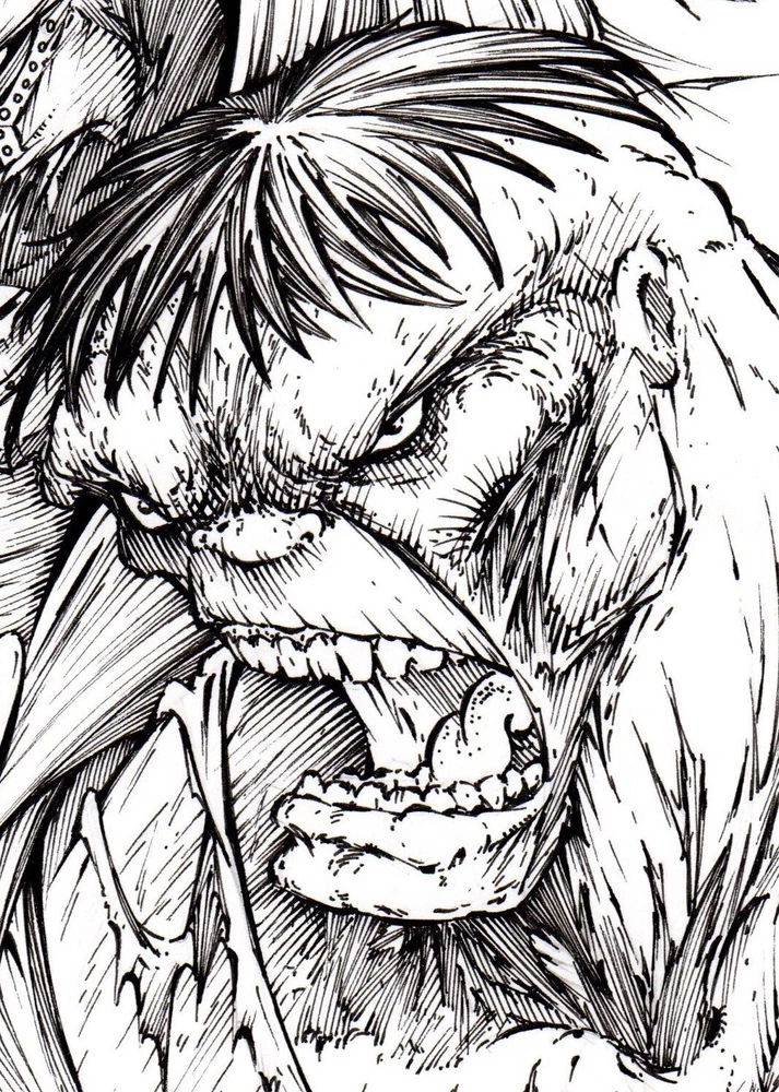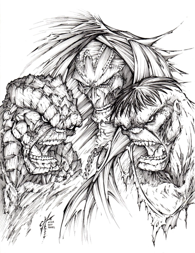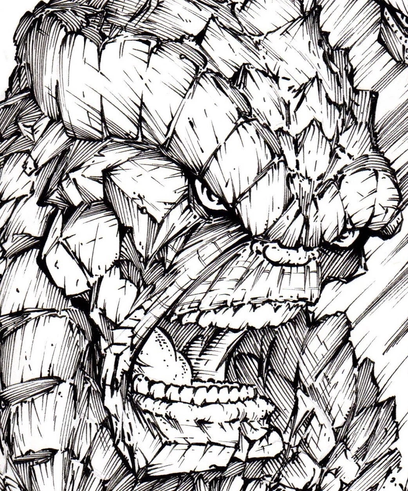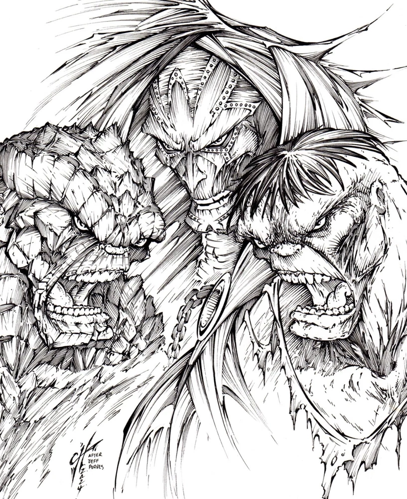 The Thing, Dr. Doom & Hulk. ORIGINAL, B/W, drawing, illustration by Calvin Henio