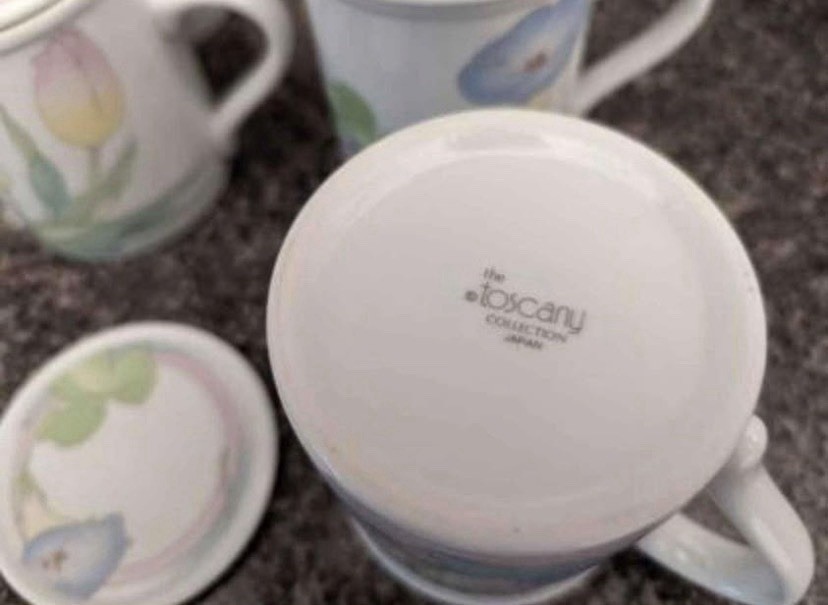 This is a complete, hard to find, set of Toscany vintage Japanese porcelain tea cups with lids/coasters from the 1980s. They are in excellent condition, no marks, chips, cracks, crazing - like new, look like they have never been used. Fast & free shipping