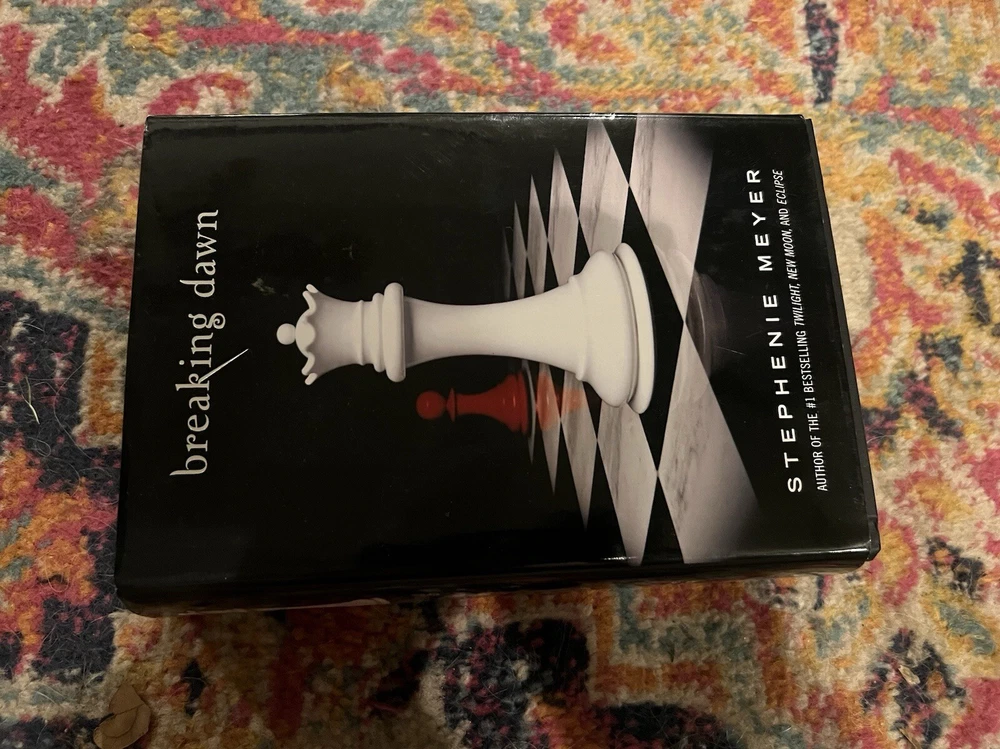 This is a hardcover copy of "Breaking Dawn" by Stephenie Meyer, the 5th book in the "Twilight Saga Ser." This novel is part of the young adult fiction and juvenile fiction genres, with a focus on romance, paranormal, occult & supernatural, family & marriage & divorce, social themes like dating & sex, and vampires. The book has 768 pages, is 8.6 inches long, 6 inches wide, and 2.5 inches high, with a weight of 29.7 ounces. It was published by Little, Brown Books for Young Readers in 2008 and is written in English. This first edition novel is perfect for both young adults and adults who enjoy the "Twilight Saga Ser."
