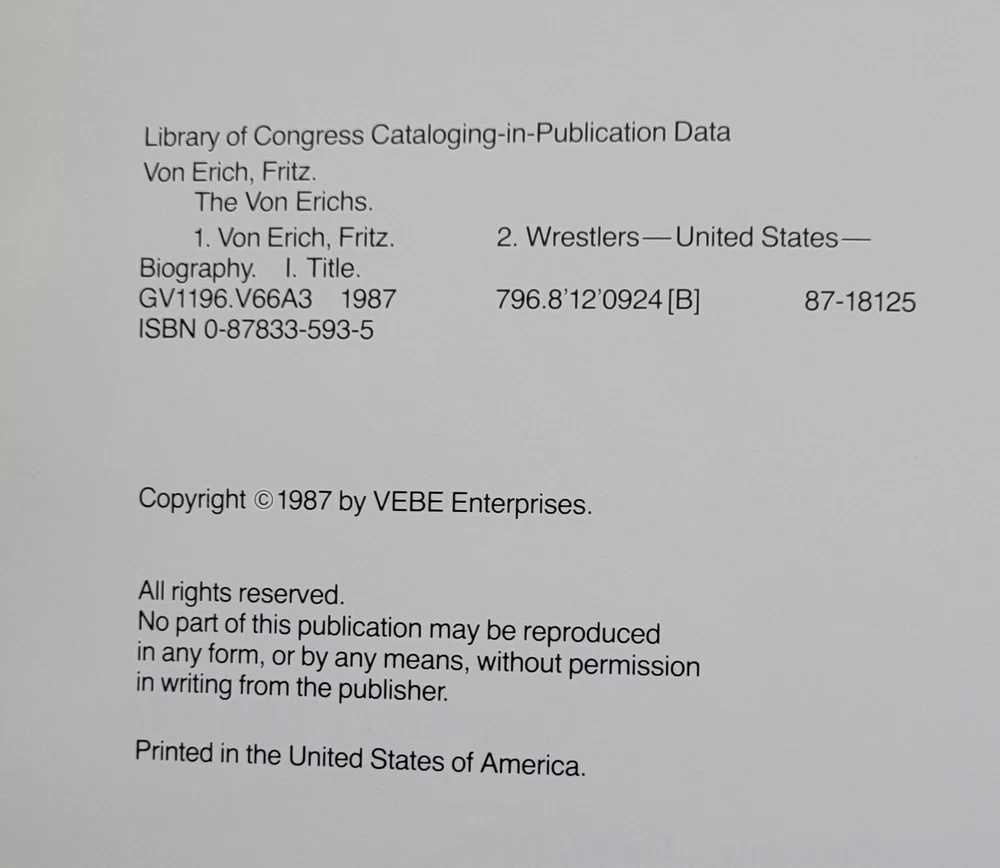 Author: Fritz Von Erich LCCN: 87-018125 Subject Area: Référence ISBN-13: 9780878335930 ISBN-10: 0878335935 gtin13: 9780878335930 brand: Taylor Trade Publishing Publication Name: Von Erichs : Triumps and Tragedies of Wrestlings First Family Language: English Dewey Edition: 19 Publication Year: 1987 Format: Hardcover Publisher: Taylor Trade Publishing Number of Pages: 128 Pages Type: Not Available Lc Classification Number: Gv1196.A1d59 1987 Subject: Genealogy & Heraldry Dewey Decimal: 796.8/12/0924 B