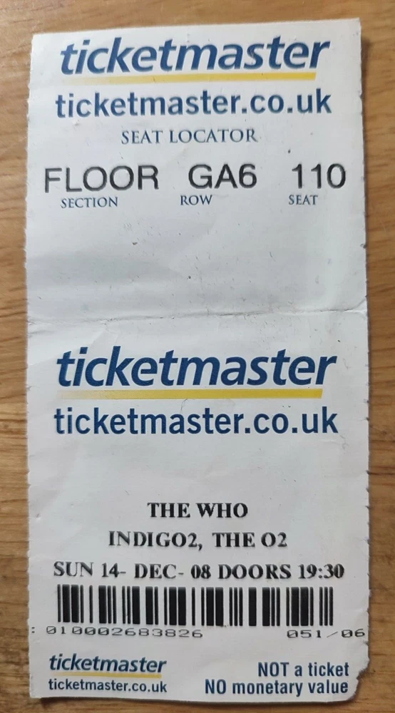 THE WHO - LONDON 14 DECEMBER 2008 Rare fanclub gig voucher stub for the small 2,500 capacity club venue within the O2 arena complex in London on Sunday the 14th December 2008. Entrance was to match up with the bar code and the credit card that purchased the entrance tickets. Very rare item for any concert ticket stub or Who collector. Buy now at £59.99. Postage & Packing signed - UK is £3. Rest of the World P&p: £8 . I do postal deals on multiple purchases. From a smoke free home Any questions please message me