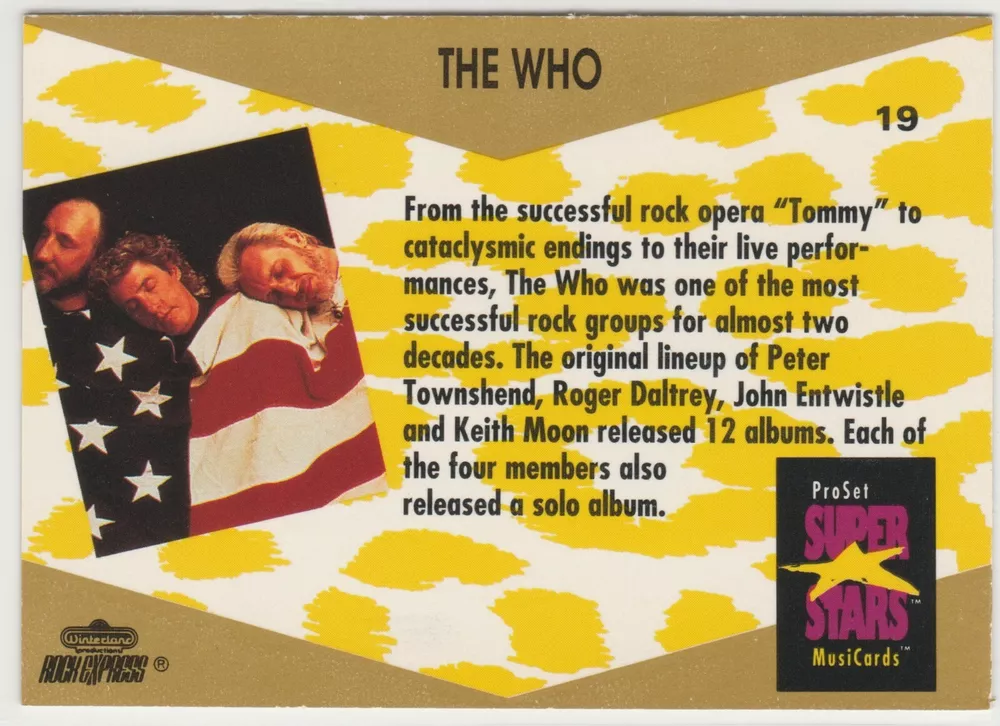 The Who #19 Legends 1991 ProSet Super Stars MusiCards personal stock images centering of cards may vary compared to listed images condition Excellent or better