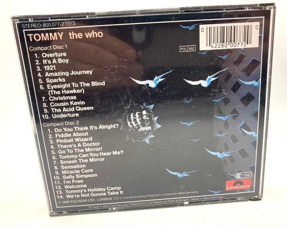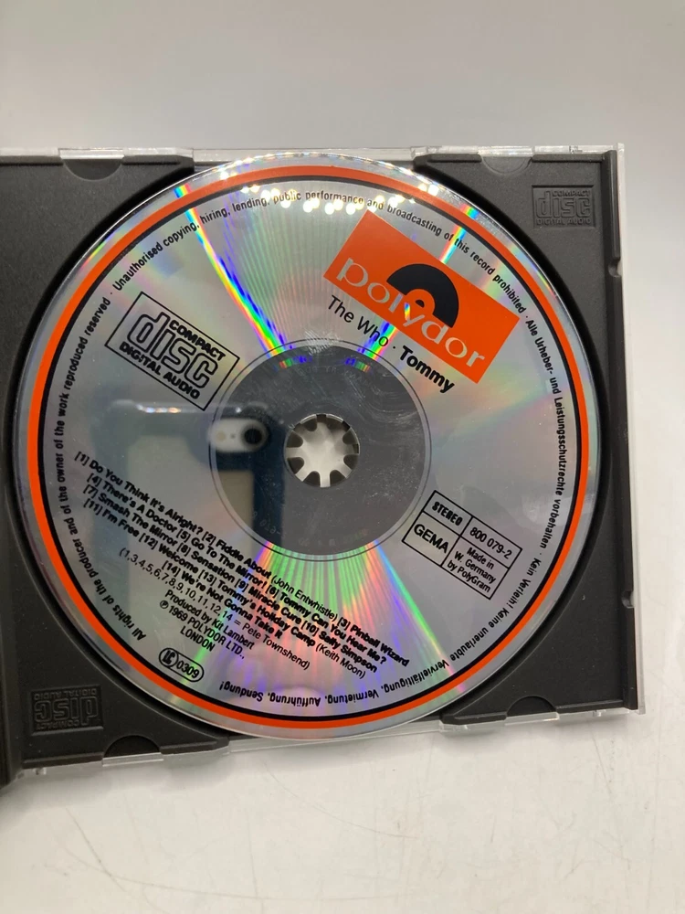 Case Condition:Very Good (VG)Type:AlbumRecord Label:PolydorInlay Condition:Very Good (VG)Format:CDLanguage:EnglishArtist:The WhoFeatures:Studio RecordingStyle:Hard RockCase Type:Jewel Case: StandardEra:1960sCD Grading:Good (G)Genre:Pop, Rock, Rock 'n' RollRelease Title:Tommy [Germany]UPC:0042280007720gtin13:0042280007720