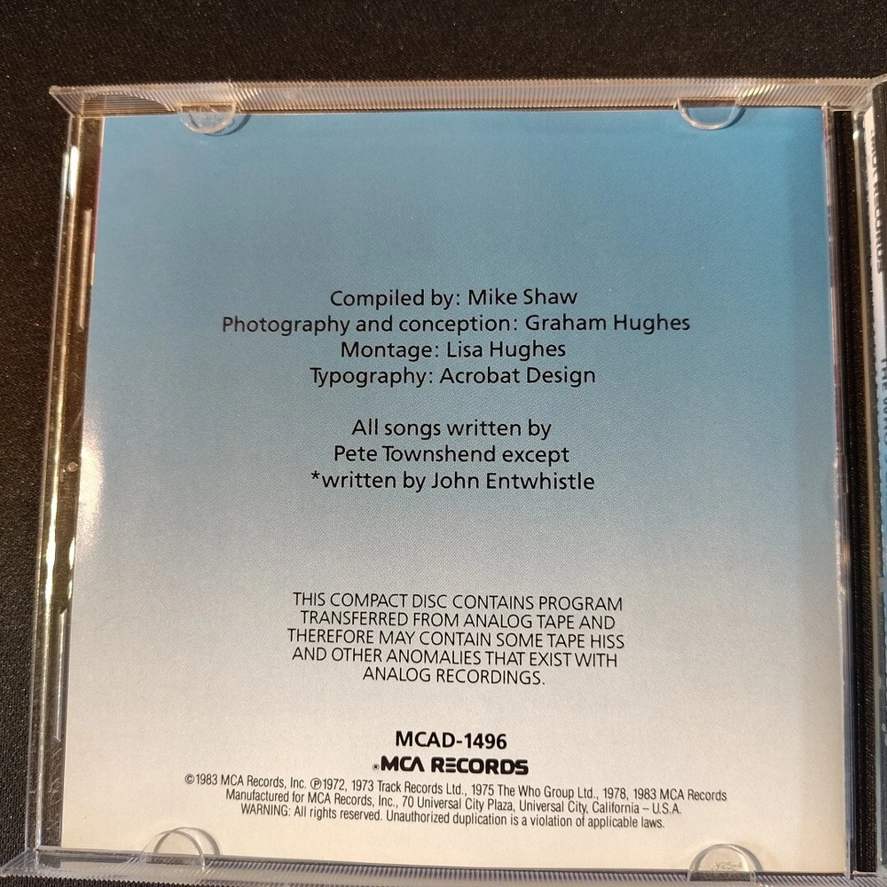 The Who's Greatest Hits is a must-have album for any fan of classic rock. This CD, released in 1983 by MCA Records, features a compilation of the band's greatest hits. The jewel case is standard size and the CD grading is excellent (EX). The inlay condition is also excellent (EX) and the catalog number is MCAD-1496. This album is a club edition and was released in the United States. The Who's Greatest Hits is a rare find and a perfect addition to any music collection.