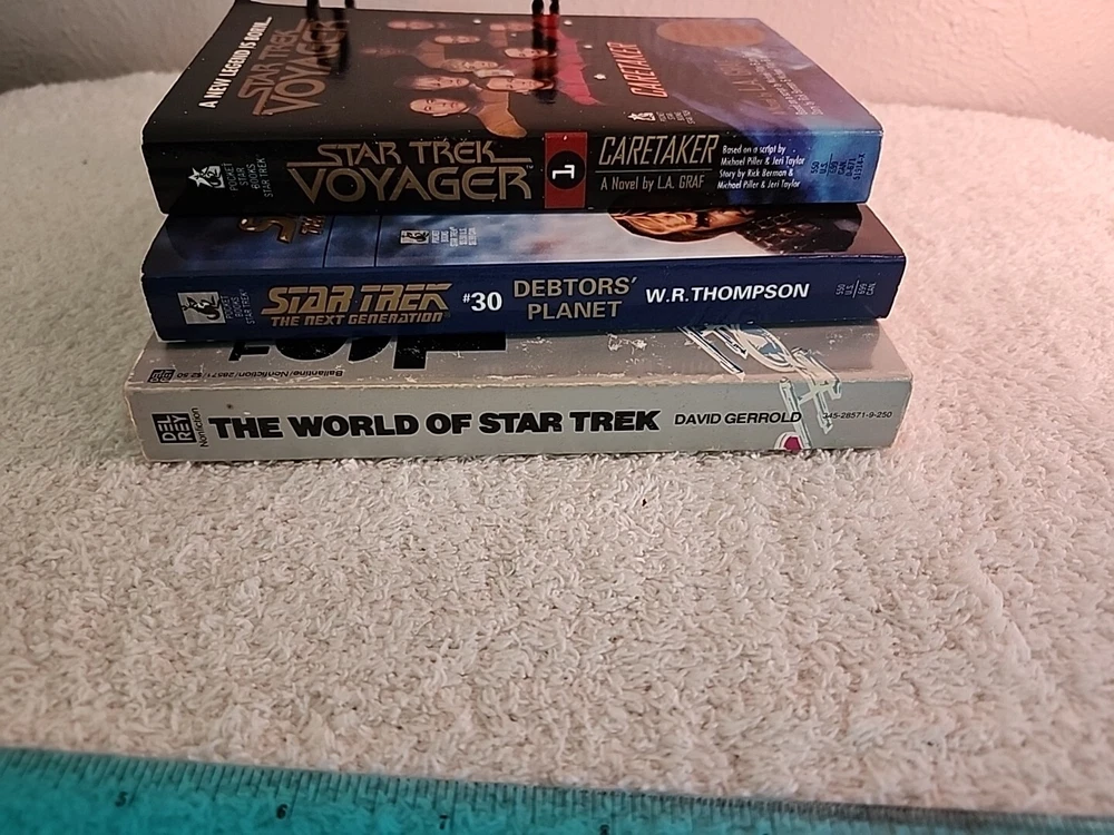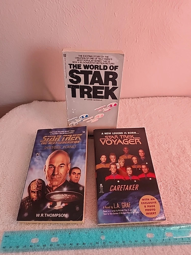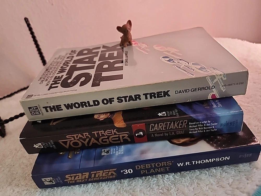 UNIQUE VARIETY OF THE STAR TREK UNIVERSE SEE PHOTOS! THE WORLD OF STAR WARS -DAVID GERROLD Explore the fascinating world of Star Trek with this lot of three books by David Gerrold. Immerse yourself in the adventures of Voyager and The Next Generation in the 1990s era of the Star Trek universe. These paperback novels are perfect for any science fiction fan. ****Chula, our tiny Chihuahua figurine hidden in some photos—spot her for $3 off the purchase! Thanks for visiting, and happy treasure hunting at La Casa Chula!