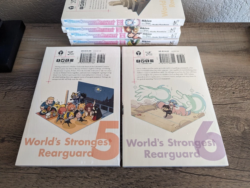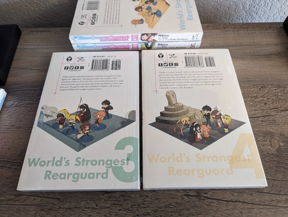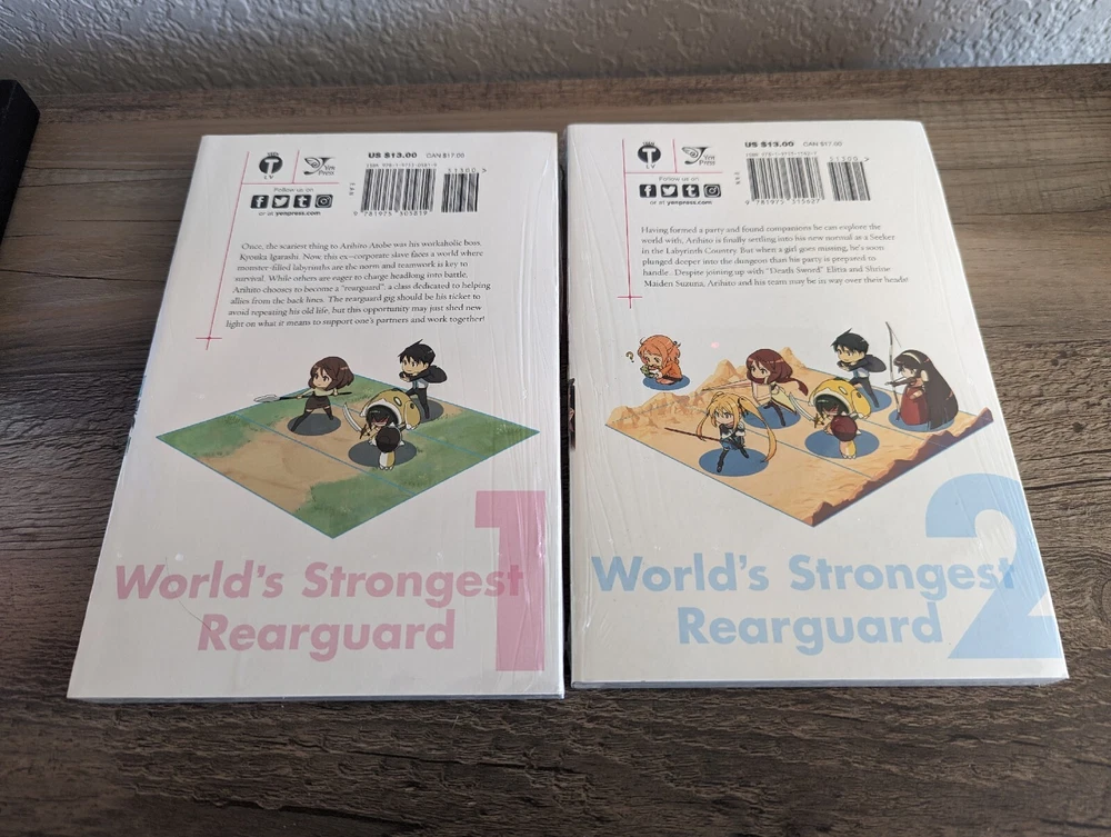Series: The World's Strongest Rearguard: Labyrinth Country's Novice Seeker (Manga) Artist / Writer: Rikizou (Art) ; Towa (Story) ; Huuka Kazabana (Character Design) Genres: Isekai, Reincarnation, Action, Fantasy, Adventure Demographic: Volume(s): 1, 2, 3, 4, 5, 6 Complete Series? No Language: English Publisher: Yen Press Rating: Teen MSRP: $13.00 per volume ($78.00 for set) Synopsis: Once, the scariest thing to Arihito Atobe was his workaholic boss, Kyouka Igarashi. Now, this ex-corporate slave faces a world where monster-filled labyrinths are the norm and teamwork is key to survival. While others are eager to charge headlong into battle, Arihito chooses to become a "rearguard": a class dedicated to helping allies from the back lines. The rearguard gig should be his ticket to avoid repeating his old life, but this opportunity may just shed new light on what it means to support one's partners and work together! ----------------------------------------------------------------------- About Us: Cozy Manga is an online store specializing in graphic novels, manga, light novels, artbooks, and relevant products. As avid fans and collectors ourselves, we bring a curated touch with hand-picked stock and mindful handling. Shipping and Handling: All of our listings come with one business day handling and are shipped directly from our location in Albuquerque, New Mexico, USA. To help protect your purchase during shipping we will always ship your order in either a box or between pieces of cardboard if mailed in a bubble mailer. Quality Controls: All of our books come shrink wrapped. Any volumes that are delivered to us with no factory wrap are personally shrink wrapped once unpacked. While we will strive to shrink wrap volumes as professionally as possible, there may be some imperfections with the shrink wrap. Some volumes may come with minor imperfections or nicks if delivered as such from the publisher. Volumes with bigger imperfections will be listed as such with details. Return Policy: All of our listings come with a 30 day free return policy, including remorse returns. In the event you no longer want an item and wish to return it, item(s) must be received in new condition with their shrink wrap still intact for a full refund. Any items returned opened, used, damaged, or otherwise not in new condition may be subject to a variable refund deduction depending on the state of the item(s) up to 50% per the Ebay Seller Protection Policy. When returning an item, make sure to pack it properly to help prevent damage in transit. We do not offer no-return refunds and refunds will not be issued until we have received your return and inspected it. Returns initiated due to item arriving damaged, doesn't match the listing description, or because it is the wrong item are subject to the Ebay Money Back Guarantee Policy . If we have more of the same item in stock, you may request a replacement or a same value exchange. Cancellation Policy: If you made an order but have changed your mind and want to cancel please use the eBay cancellation request form or send us a message. We will cancel your order and refund you your money no questions asked so long as we have not already shipped it out. If you request a cancellation but your package has already been dropped off with the shipping carrier you will need to initiate a return request once you have received your order. F.A.Q.: Would you be willing to take x amount for this listing? Our listing prices are non-negotiable. We do not accept offers or haggle on price. If you are interested in a listing but would like to buy it at a lower price, please watch the listing to receive future notifications on any sales or discounts that may be offered in the future. I'd like to buy certain volumes from this multi-volume set listing. Would you be willing to split them out? If you need or want only certain volumes out of our set listings, please send a message about what volumes you would like to purchase. Most of the time we are more than willing to accommodate your request!