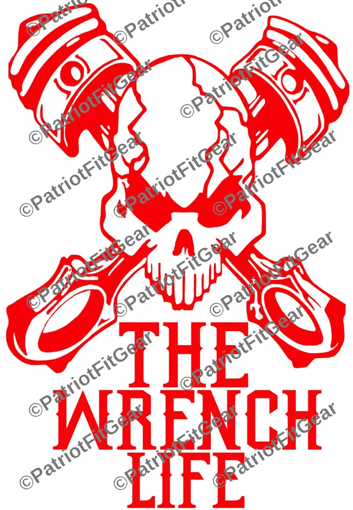 The Wrench Life,Mechanic,Gear Head,Wrenching,Skull,Pistons,Custom Vinyl Decal