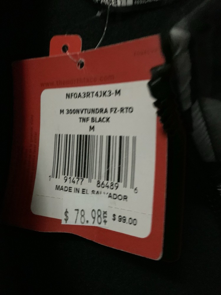The north face jacket features a modern black design with a gray geometric patterned upper panel and embroidered logo on the chest.full zip front closure,soft,comfortable interior,zippered chest pocket,side hand pockets for secure.lightweight and warm.