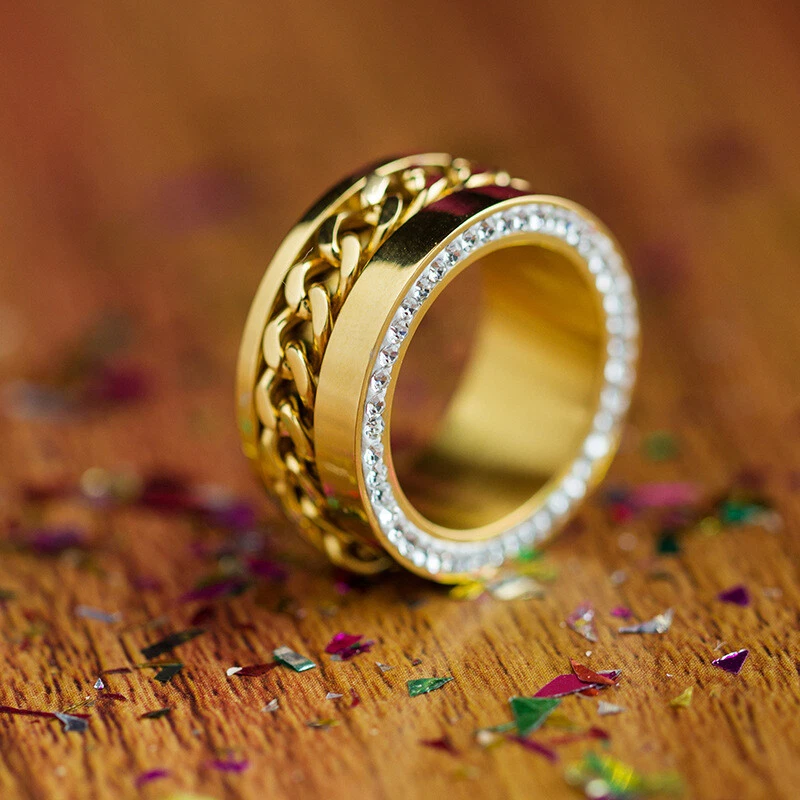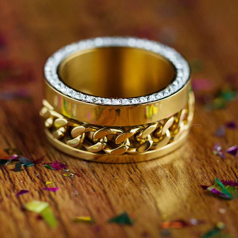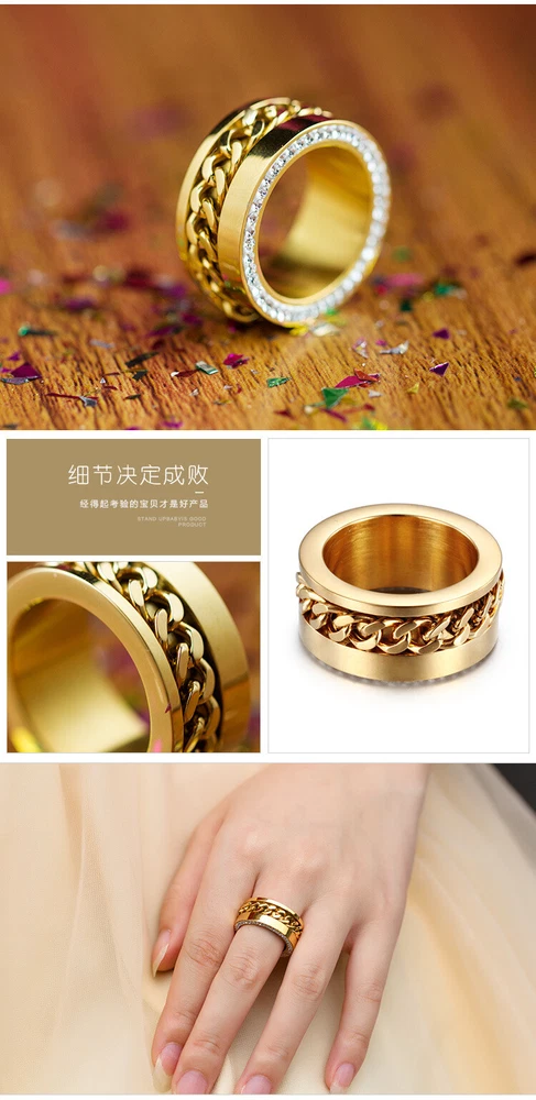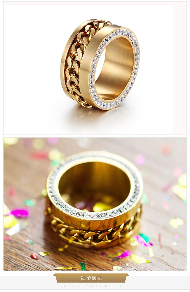 The titanium steel chain ring is studded with diamond stainless steel rings