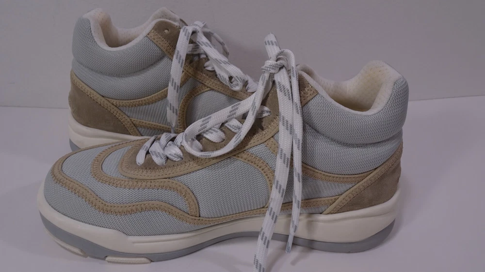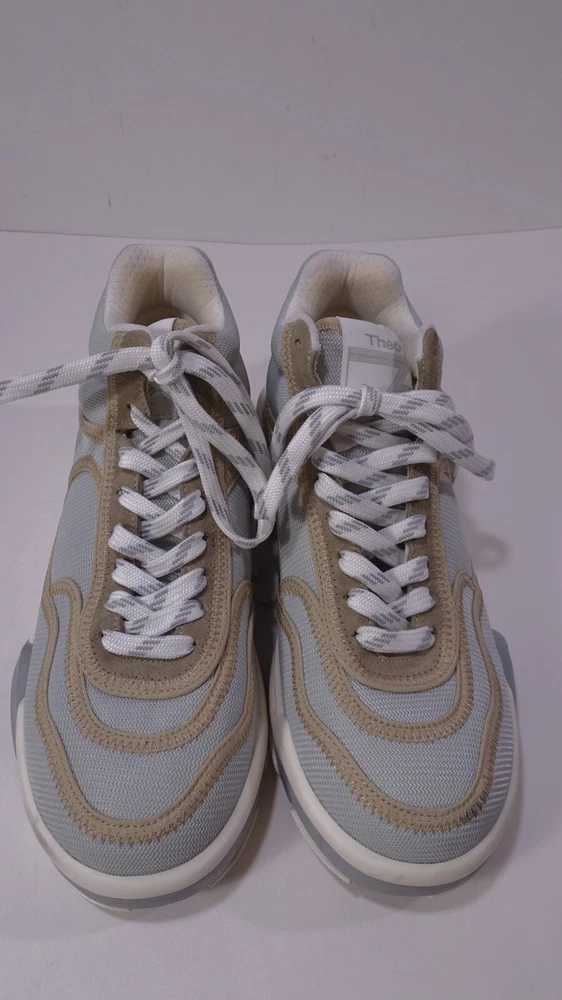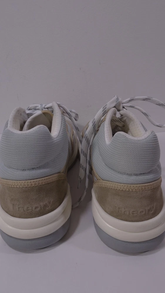 Theory Project Mesh Suede Sneakers Sz 7 NWOB 298.00 Plaster An everyday sneaker designed with panels of leather and suede that are outlined in a reflective material for a fluid, organic silhouette. Detailed with a custom sole and terry cotton-trimmed lining, these trainers are exquisitely crafted in Portugal. Informed by his Dutch upbringing and a deep appreciation of architecture, Paris-based fashion designer Lucas Ossendrijver has worked with some of the most influential European fashion houses. He brings his innovative construction techniques to Theory Projecta special collection that expands on Theorys design codes. This fall, Ossendrijver brings another layer of purpose to the collection through functional and thoughtful details. Style #: N030006O Fit True to size, choose your normal size If in between sizes, we recommend sizing up Composition 100% calf leather Sustainability Theory Project Leather Sneakers in Plaster Size 7 NWOB 298 Finished Garment Manufacturing Country/Region: Portugal Fabric Production Country/Region: Italy Care Professional leather cleaning only. Made in Portugal.
