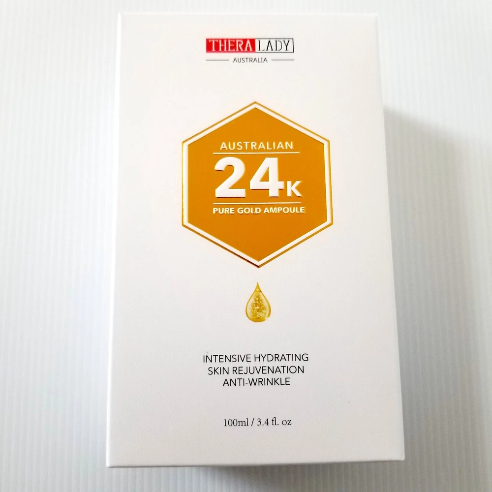 Thera Lady Australian 24K Pure Gold Ampoule – 100ml (Short-Dated Clearance Sale) Short-Dated Stock – Expiry: 31 March 2025 – Clearance Sale This Gold Ampoule boosts collagen production by acting as a protective barrier, enabling natural processes in your skin to flourish. It improves skin elasticity and replenishes the natural glow in your complexion. Step outside feeling hydrated, confident, and sunkissed. Product Details Brand: Thera Lady Australia Size: 100ml / 3.4 fl. oz UPC: 9369998023530 RRP: AUD $35.99 Type: Hydrating & Rejuvenating Serum Main Ingredients: 24K Pure Gold Ampoule Hyaluronic Acid Niacinamide Witch Hazel & Cucumber Extract Features: Deep hydration and skin nourishment Anti-wrinkle and skin rejuvenation Enhances skin elasticity and glow Lightweight and fast-absorbing formula How to Use Cleanse and tone your skin in the morning and night. Apply 5 drops to your face and neck. Gently pat for better absorption. Follow up with a lotion or cream.