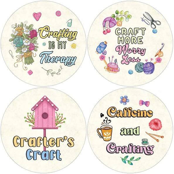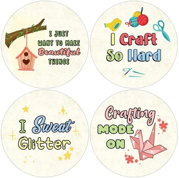 16 UNIQUE DESIGNS INSPIRING STICKERS FOR YOUR DIY PERSONALIZED DECORATIONS - Creanoso Crafting is My Therapy Stickers (10-Sheets). These colorful and uniquely inspiring round shaped stickers are the best tool for DIY decoration and personalization of your belongings. GREAT STOCKING STUFFERS , TEACHING SUPPLEMENTARY MATERIALS, AND GIVEAWAY - Great stocking stuffers gifts for Boys, Girls, Teens, Kids. A perfect design to give during classroom school activities, home schooling,birthdays, anniversaries, family day, and any other special occasions. MADE WITH DURABLE AND WATERPROOF MATERIALS - There is a lamination or coating to make the stickers high water resistant, and WILL NOT fade from the water. The stickers can stick it anywhere you like, and it sticks there and lasts a long time. A COLORFUL AND DECOR STICKER DECAL - Each sheet with 16 individual round stickers. There are 10 sheets , with a total of 160 pcs of stickers. STICKER SIZE: 1.5 INCHES IN DIAMETER Crafting is My Therapy Stickers (10 Sets X 16 Designs) COLORFUL AND COLLECTION OF TEXT STICKERS • Well designed. • Very encouraging. • Self-adhesive. Crafting is My Therapy Stickers (10 Sets X 16 Designs) are super fun to collect; you can't have just one! That's why you will find a selection of stickers right here. Each package comes with different stickers in a variety of designs. Stick them here, stick them there, stick them everywhere! Everyone will love these self-adhesive stickers. These colorful stickers are perfect for any adults and these come with very inspiring messages and bright pictures. A fun, inexpensive way to add a decorative, notes, and stationery. Delight yourself with uplifting messages designs that are very encouraging. Crafting is My Therapy Stickers (10 Sets X 16 Designs) perfect for giveaways, behavior incentives, prizes! These stickers are acid-free, nontoxic, and safe for use on photos. This product comes with a 60 days money back guarantee. You can return them to us for a full refund.