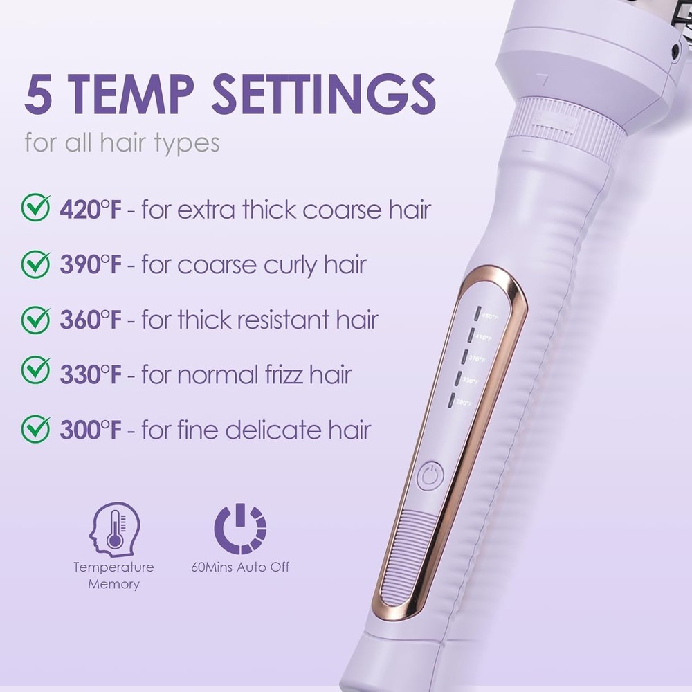-Brand New - Never Used - Questions: Feel free to ask any Questions - BOX: Never Opened - DESCRIPTION: Volumetric Styling: Equipped with 45mm/38mm/32mm nano-coated constant-temperature barrels, this styler effortlessly creates 12+ trending hairstyles, from beachy waves and French curls to root-lifting bangs. Combining a curling iron, straightener, and volumizing brush in one, it enables easy self-styling even for waist-length hair. Intelligent Temperature Control: 5 precision settings (150°C–230°C) adapt to all hair types: low heat protects fine strands from frizz, High calorie can immediately shape coarse hair. Real-time temperature monitoring seals cuticles while styling, leaving hair smoother with each pass. Abundant and The blowing comb synchronously smooths out frizz, increases the support of the hair roots by 60%, flattens the scalp and instantly raises the top of the skull, making the hair smooth and healthy, and looking plump and shiny. Easy to use: It can be turned on and off in 30 seconds, with anti scalding comb teeth and a twist switch design, allowing for styling even with one hand The detachable handle is only palm sized for storage, and there is no pressure when storing makeup bags for travel. Hair care certification: Passed the international IEC ion damage test, with a hair protein loss rate of less than 3% after continuous use at 230°C for 30 minutes. Damaged hair can also be used with peace of mind. - OFFERS: Reasonable offers are considered, LOWBALLERS, Best price and Lowest askers will be ignored - all sales final/no refunds/ no exchanges/ no returns - Disclaimer: I do not own the brand's trademarks, logos, pictures, or products posted. I do not intend to infringe on copyright. I find such content available on the internet. Contents are considered fair use. -Thermal Round Brush, Heated Brush Curling Iron Blowout Fast Heating Create Volume Frizz-Free Hair Style, Dual Voltage 3 Size for Short to Long Hair, Purple