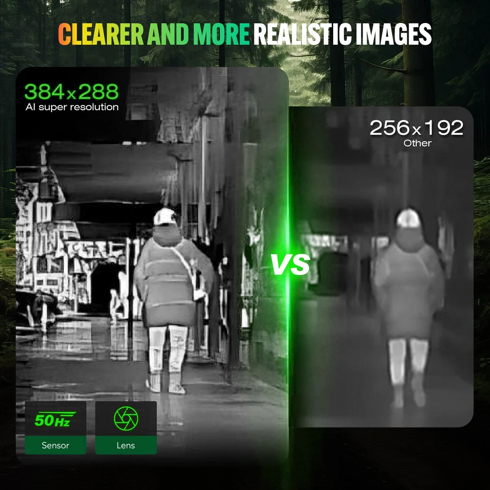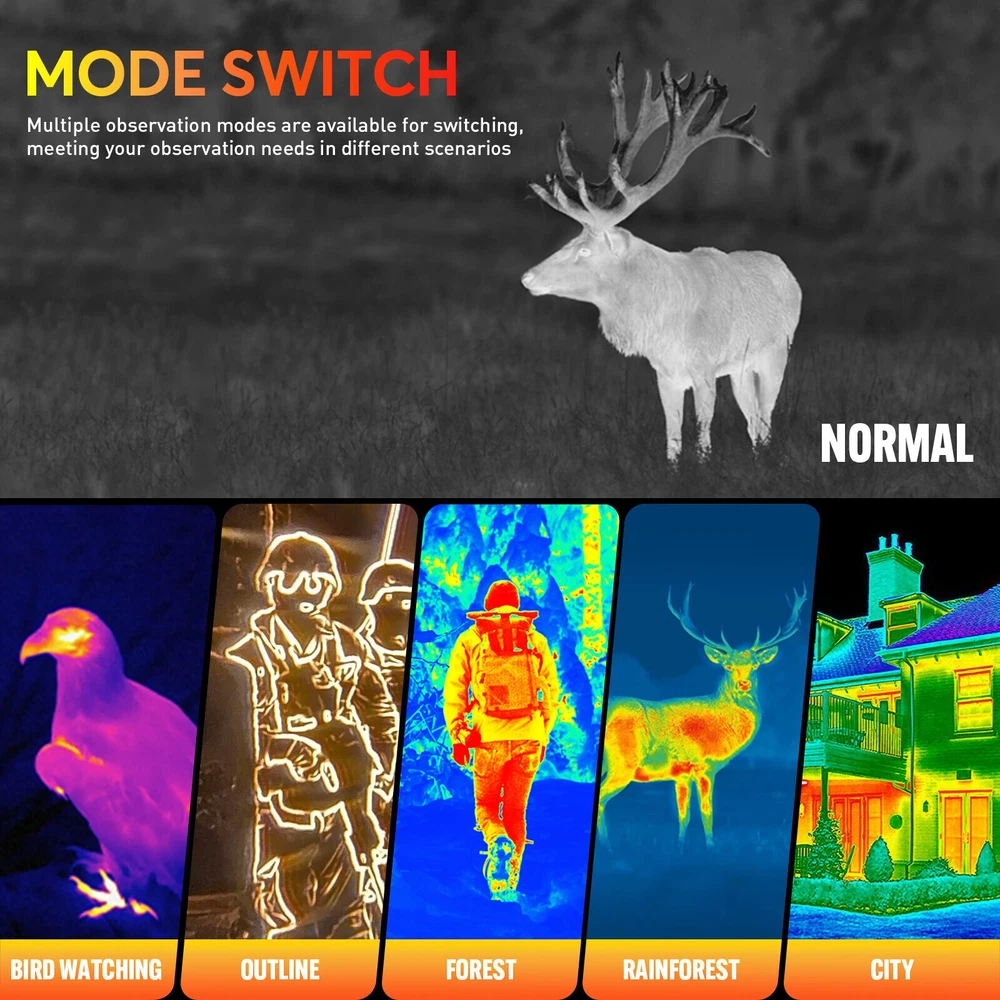 Highlight Function: ⭐[Artificial intelligence algorithms - AI Super Resolution - 384x288] ⭐[0.32inch Micro-OLED (800×600RGB) display screen] ⭐[8x Digital Zoom] ⭐[12 μm Pixel Interval] ⭐[60 HZ Refresh Rate] ⭐[15 mm Lens (Focal length)] ⭐[Less than 40 mk NETD] ⭐[NORMAL, OUTLINE, CITY, FOREST, RAINFOREST, BIRDWATCHING Scene Mode] ⭐[Black Hot, White Hot, Red Hot, Iron Red Hot, Green Hot Image Mode] ⭐[Built in 32GB Memory Module] ⭐[Multiple application scenarios] ⭐[Easy-to-use operation interface] ⭐[Built-in 4000MAH Battery] ⭐[Wi-Fi & Hotspot] ⭐[GT-Share(Android and IOS) APP] ⭐[Support to connect with Multiple devices] ⭐[Lightweight & Portable & Handheld] Package Included: 1* Night Vision thermal Goggles 1* Instructions 1* 32G Memory card 1* USB cable The H3 thermal Monocular uses the latest infrared imaging technology to detect the tiniest temperature differences of natural and man-made objects, which allows users to see in full darkness, smoke, and low-visibility, low-contrast conditions.Boating, Camping, Fishing, Hunting, Firefighting, Surveillance, Observe your pet, Hiking, Tracking, Enhance safety, Automobrepairs, Architecture check, UFO searching and even star gazing. Highlight Function: ⭐[Artificial intelligence algorithms - AI Super Resolution - 384x288] High-resolution thermal monocular for hunting with a updated AI Super 384x288 detector and 12μm high-sensitivity focal plane array. • AI super-resolution technology allows you to enjoy 384*288 display effects at the cost of purchasing 256*192 equipment, making observation clearer. Image enhancement, increasing resolution from 256 to 384. • Objects are automatically framed. • The quality of photos and videos is improved. • Image recognition, automatically marking object classification attributes ⭐[0.32inch Micro-OLED (800×600RGB) display screen] 0.32inch Micro-OLED (800×600RGB) display screen for crystal-clear thermal vision in any conditions. Cutting-edge adaptive AGC, DDE, and 3D DNR technology for superior thermal imaging and heat vision. ⭐[8x Digital Zoom] Long detection Range, making it an ideal thermal monocular for hunting and outdoor activities. Digital zoom capabilities up to 8x for up-close thermal imaging and infrared monocular vision, with its 8X digital zoom, It will allow you to see things clearly at night time, even in low light condition without thermal. ⭐[Multiple application scenarios] Provides multiple application scene modes. When using, users only need to switch the device to the corresponding scene mode to observe the experience. Multiple application scenarios, such as bird watching mode, fishing mode, rainforest mode, forest mode, city mode, etc. 1. Users who own guns need to quickly discover and identify targets when hunting. The AI15 product has a field of view of 18.00 x 13.55°. With the support of AI super-resolution technology, it fully meets the user's needs for high-resolution display. The functions of AI automatic recognition and name tagging will continue to be completed in the future. 2.Outdoor sports enthusiasts and teams need to quickly grasp the surrounding situation when encountering bad weather such as low visibility and camping at night outdoors. AI15 can effectively complete the task, and multiple devices can be connected and shared at the same time to increase the fun of team sharing. 3. People who keep pets, pet observation: At night, you can effectively observe the living habits of pets and the health status of pets 4. Home security equipment: AI15 supports standard bracket connection, and can complete monitoring tasks in specific environments after fixing the equipment. 5. Machine Auto Repairments: AI15 can help quickly find the fault point, complete the repairment faster than ever. 6. Disaster relief: You can quickly find signs of life and complete rescue tasks as soon as possible. ⭐[ Easy-to-use operation interface ] The graphical interface boot wizard allows for quick and easy configuration of the device Users only need to switch to the application scenario that matches their current one to start observation and use, without the need to adjust other parameters. Hot spot marking feature to detect and mark the hottest spots in your field of view. Multi-language menu support. Making this the perfect monocular for night hunting and thermal imaging enthusiasts. ⭐ [Built-in 4000MAH Battery] Built-in 4000MAH large-capacity battery with ultra-long battery life, (Type-C rechargeable li-ion battery) Long-lasting rechargeable Lithium battery with more than 10 hours of continuous running time (with Wi-Fi hotspot function off). ⭐ [Wi-Fi & Hotspot] Wi-Fi hotspot and GTMEDIA Connect App compatibility for easy image and video sharing and remote parameter adjustment. ⭐ [Support to connect with Multiple devices] Support for multiple devices sharing happiness: 1. Connect USB devices to expand storage space, and directly store recorded content on USB devices for secondary sharing 2. Connect MIC devices to record user voices, so that users can make voice explanations while observing and enrich the recorded content 3. Connect HDMI devices or CVBS devices to make video observation more convenient 4. GT-Share APK, supports both Android and IOS devices. Share observation content in real time ⭐ [Lightweight & Portable & Handheld] The AI15 product is lightweight and compact size, it can be held in one hand. Durable design with an IP67 protection rating and 1.5m drop test height. Portable to take it to everywhere. Specification: 256x192 Resolution, AI Super Resolution - 384x288 12 um Pixel Interval 60 HZ Refresh Rate 8um to 14 um Response Waveband Less than 40 mk NETD 15 mm Lens (Focal length) F0.9 Aperture 11.69 Degrees x 8.78 Degrees Field Of View 18mm Objective Lens Diameter 22mm Eyepiece diameter 1x to 8x Magnification 1x, 2x, 4x, 8x Digital Zoom 1.43inch (466x466) AMOLED High-definition Inner Screen NORMAL, OUTLINE, CITY, FOREST, RAINFOREST, BIRDW