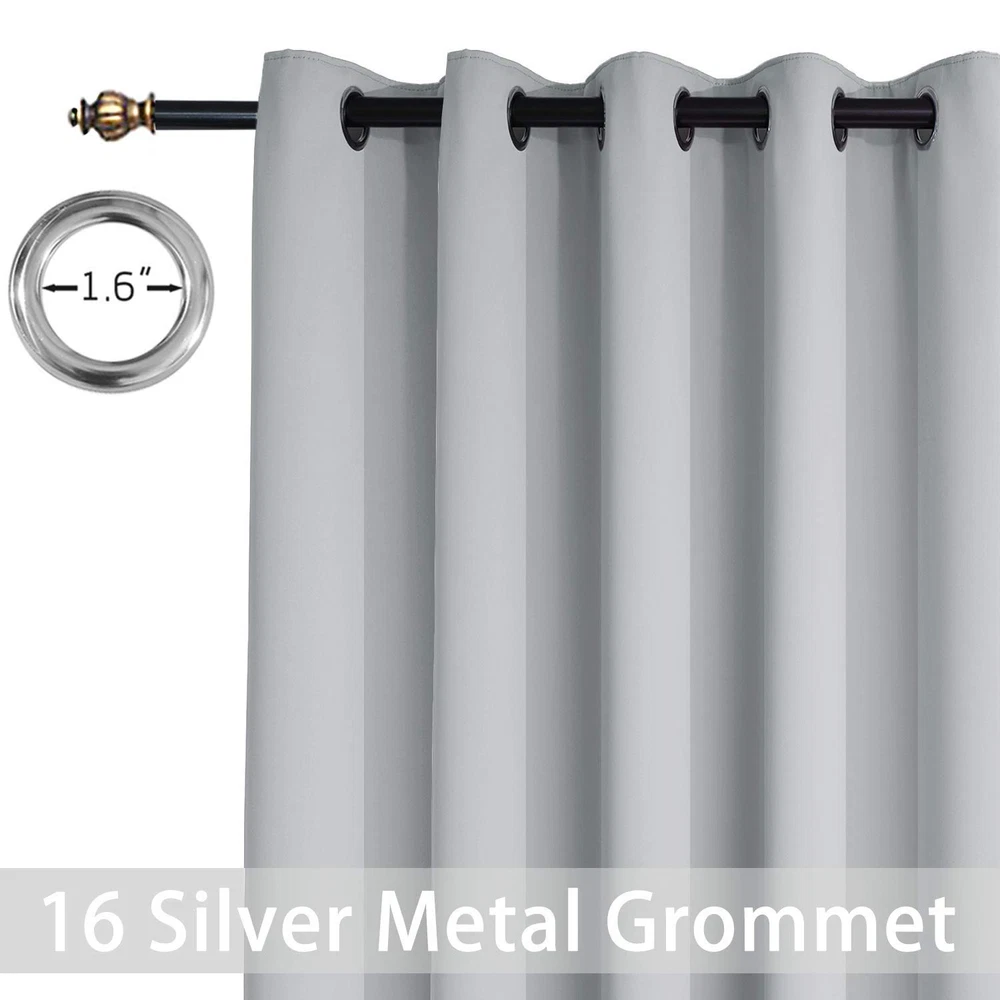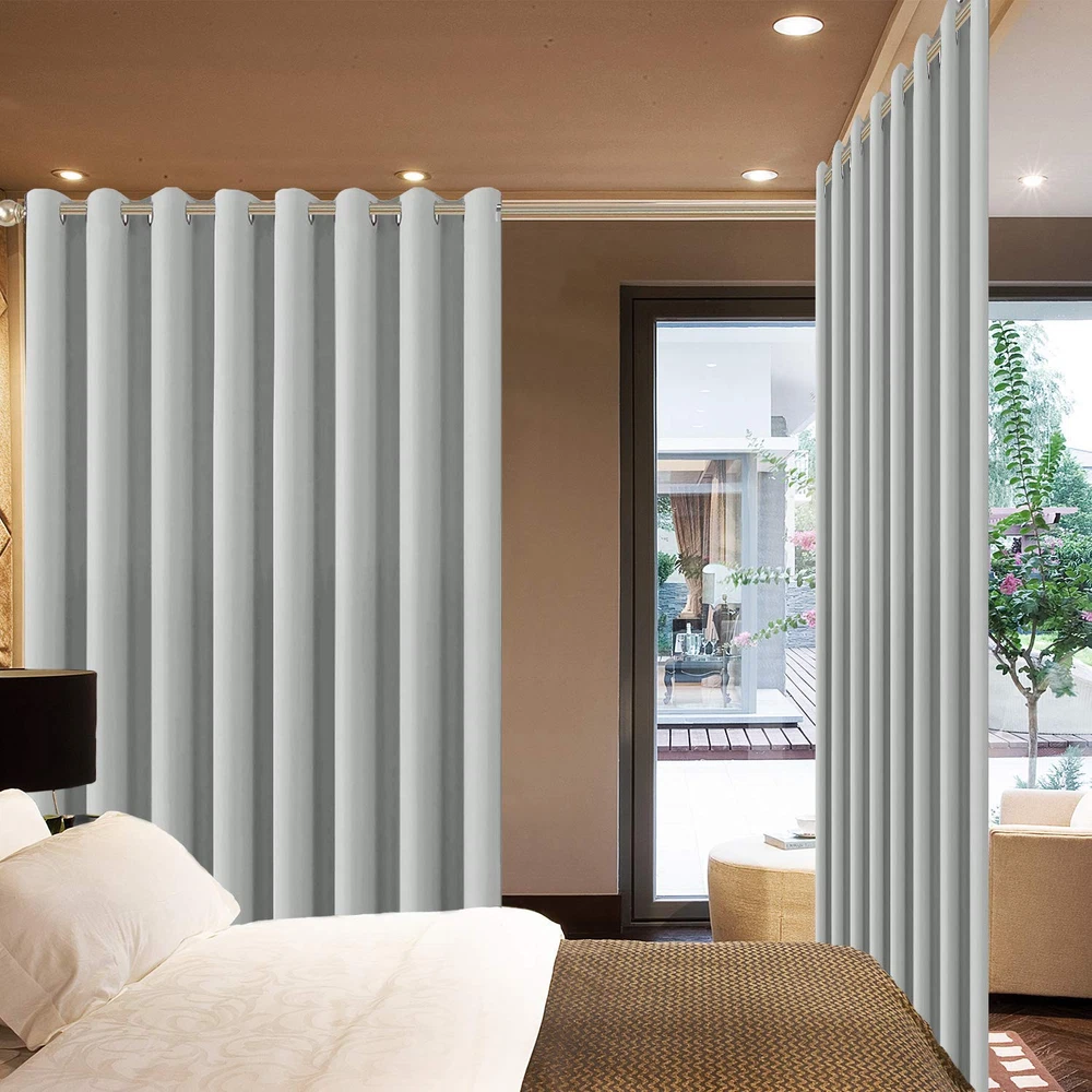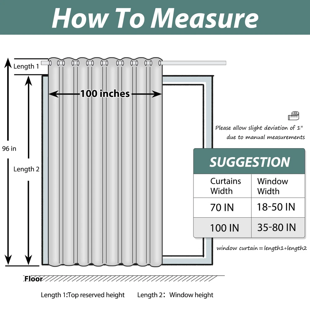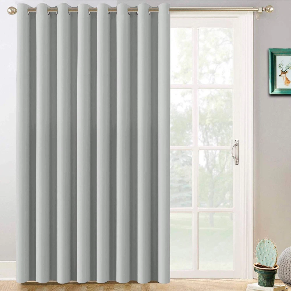 PACKAGE INCLUDES: 1 Room divider curtain panel per package.The blackout curtain's fabric is super soft and heavy innovative triple-weave polyester fabric.One panel per package, each measures 100 "W x 96" L(8.3ft Wide x 8ft Long) including 16 metal grommets. GOOD SUN LIGHT CONTROL:This extra wide blackout curtains is wide enough to covering sliding door perfectly. Besides, the curtain panel helps your patio door to block out 85% -99% light and UV ray, high performance on thermal insulated, noise reducing and privacy protecting. HIGH PRACTICALITY: This classic curtain panel will decorate your windows and rooms with new great effect, suits for contemporary, traditional, vintage rustic, victorian home styles.These wide curtains can be hung separately. UNIQUE MODERN TECHNOLOGY: Sliding Door Curtain help you enjoy high quality sleep, reduce noise , insulate against summer heat and winter chill to balance your room temperature, save your energy costs. MACHINE WASHABLE: Machine Wash Cold, delicate cycle with mild detergent. Do not bleach. Tumble Dry Low. Cool iron if needed.
