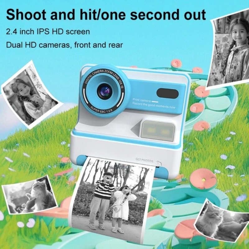 Features: Children's printing camera, instantly photoshoots and printing, easily captures beautiful childhood, not missing any moment of children's growth. 2.4inch high-definition screen, built-in fill light, built-in filter and big head stickers, supports timed photography. Double front and rear cameras, 4800W pixel, clear quality, and beautiful photos. 1080P high-definition recording allows children to record daily clip at any time and beauty. Built in large capacity rechargeable Type C fast charging, long service life. Specially designing for children, easy to operate, and easy to learn. Equipped with loss prevention lanyard, it can be carried with you and is not easily lost. Quality ABS material, rounded corner no burrs, comfortable hand feel. Specifications: Material: ABS Color: Pink, Blue(optional) Size: approx. 9.4x8.9cm/3.7x3.5inch Name: Children's Printing Camera Function: Take photos, record videos, print Camera: Front+Rear Display screen: 2.4inch Pixel: 4800W Video recording: 1080P Charging port: Type C capacity: 1200mAh Charging time: 2.5-3 hours Printing method: Thermal printing Storage: Approximately 12000+photos Package Includes: 1Pc Kids Print Camera 1Pc Lanyard 1Pc Charging Cable 3 Rolls Printing Paper 5Pcs Colored Pen 1Pc Sticker note: Please allow 1-2cm errors due to manual measurement. Please allow for slight color differences due to different display resolution.