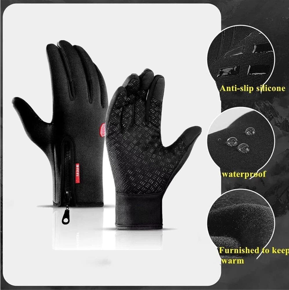 Thermal Windproof Waterproof Winter Gloves Touch Screen Thick Warm Mittens Men Women USA Glove Size: Size S M L XL Middle Finger Length 7.5 8 8.5 9 Palm Width 9 9.5 10 10.5 Palm Circumference 22 23 24 25 Features: Brand new and high quality Product Size: S, M, L, XL Material: Fabric Weight: 69g Colors: Black Function: Windproof, Touch Screen Package Contents: 1-200 Pairs Motorcycle gloves