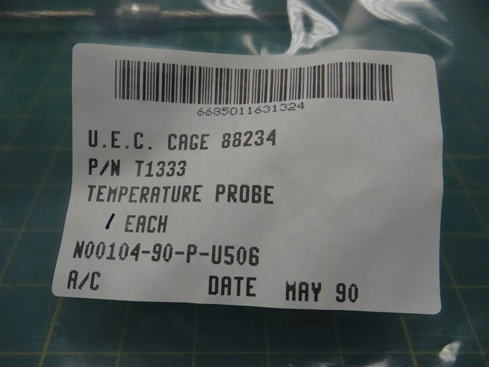Thermocouple (Temperature) Probe, 7-1/4" Probe, NSN 6685-01-163-1324, T1333 Thermocouple (Temperature) Probe, 7-1/4" Probe, NSN 6685-01-163-1324, T1333 PN: T1333 NSN: 6685-01-163-1324 Probe is 7-1/4" Long New surplus item with original packaging. Please see photos for more. XXQXX07 Powered by SixBit's eCommerce Solution