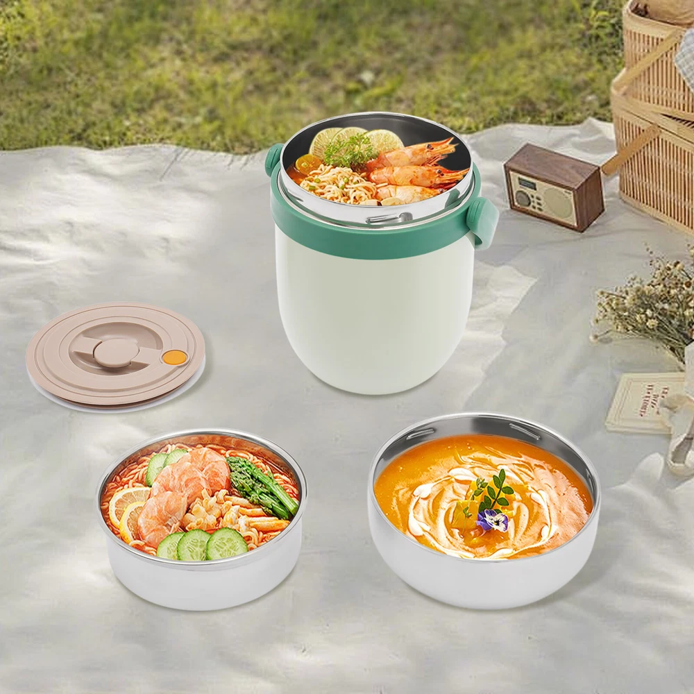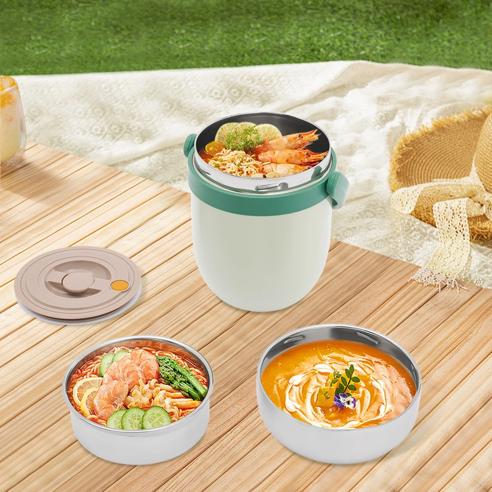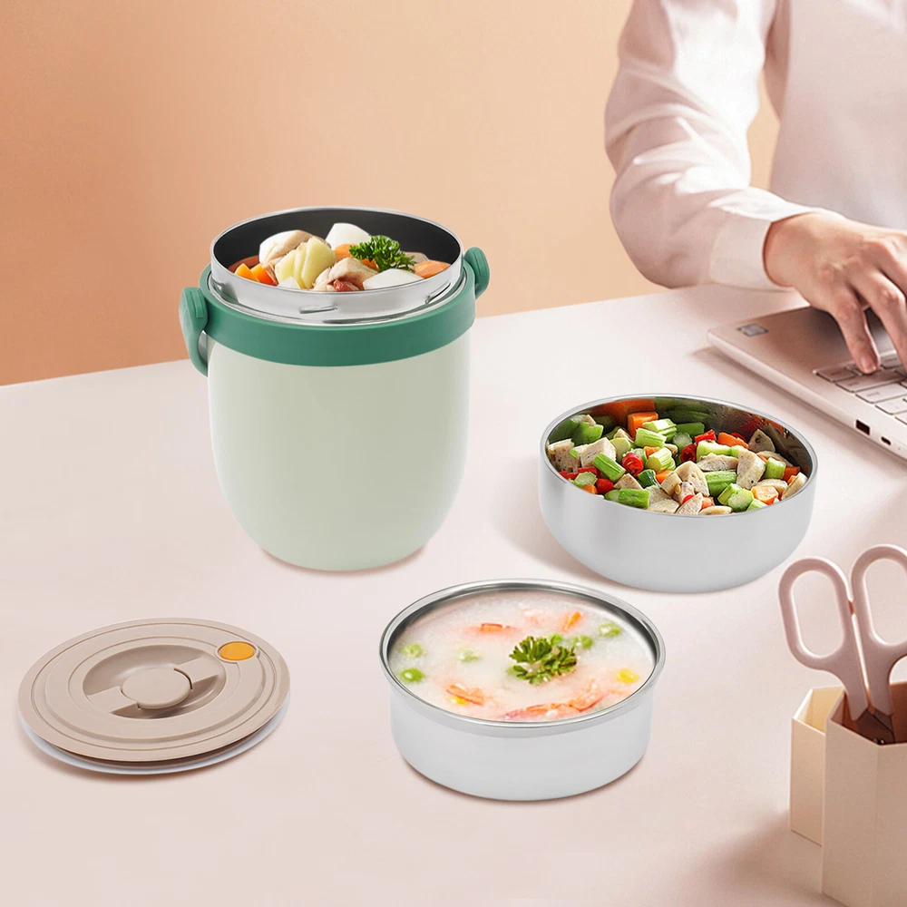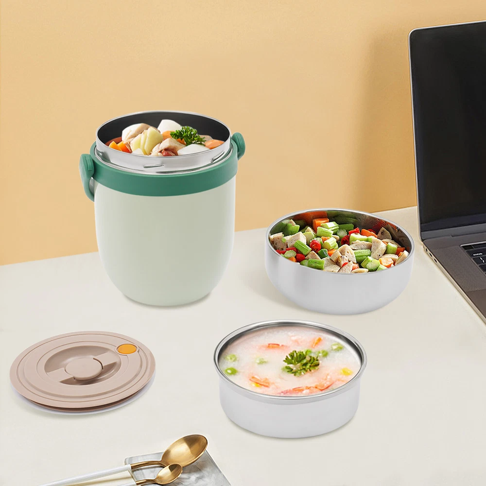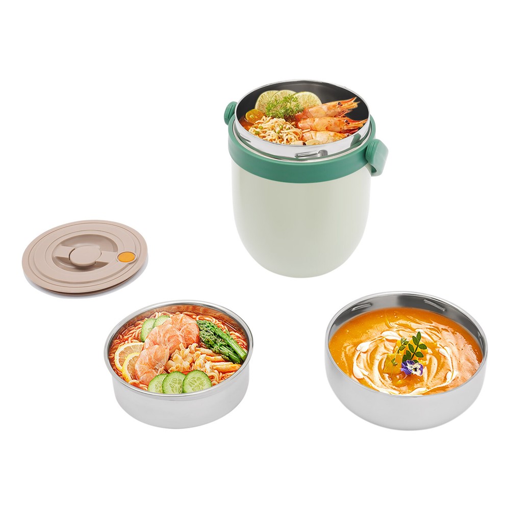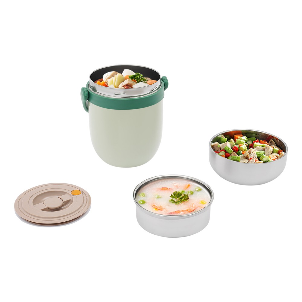 Thermos for Hot Food, Sealed Stackable Food Thermos, Soup Thermos Green Welcome Description Crafted from premium PP, silicone and 304 stainless steel with a painting process , this insulated food container incorporates advanced insulation technology, ensuring food safety while effectively preserving the flavors and freshness of your meals, fostering a healthier eating experience. Its portable design makes it easy to take with you whether you are in the office, outdoors, or traveling. It allows you to enjoy warm food and cold drinks in both winter and summer for a healthy and cozy life. Key Features Build to Last: It is made of high-class PP, silicone and 304 stainless steel with a painting process, which is rust and corrosion-resistant , durable and environmentally friendly to meet your long-term use needs. Excellent Insulation Performance : The high-class 304 stainless steel inner liner has good heat retention and excellent insulation, which ensures that the food inside stays warm for 6-8 hours, allowing you to enjoy cold drinks or hot food in winter or summer. Large Capacity: The total capacity of the product is 59.83Oz and it comes with 2 tiers, which allow you to separate meals, dishes, and soup, and can satisfy your daily needs of food for work, picnic, fitness, or weight loss. Healthy Lifestyle: It allows you to enjoy a healthier diet and allow you to have lunch whenever you want. Whether commuting to work, working out, or exploring on weekends, it will be a good helper for you to enjoy a healthy lifestyle. Easy to Carry and Store : Its compact size (6.5*10.04 inches) and lightweight(1.54lbs) allow it to be stored in a refrigerator, compartment, or cabinet without taking up too much space and for easy carry. Effortless Clean : Thanks to its smooth surface, removable bowls and lids, and simple construction, you can clean it with a damp rag(not included). Ideal Gift: Thanks to its practicality and beauty, you can give it to your friends or family as a Christmas, Thanksgiving or housewarming gift. Buy with Confidence: We stand behind all our guests and look forward to assisting you with your purchase. It is our pleasure to answer your confusion and questions. The end of the story between us is not "we sell and you buy". Details Round Edges: The smooth, and burr-free edges make it not only more comfortable to use, but also care for your skin. Practical Handle: It will not only affect the product's aesthetic, but also easy to carry. Top Lid : It prevents food from leaking out during transportation and also keeps dust and bugs out. In addition, it can be used as a soup bowl. Silicone Sealing Ring : It improves sealing and avoids liquid spillage while further enhancing insulation. Application It is suitable for use in school canteens, restaurants, homes, etc. It can be used to carry a variety of foods while working, exercising, camping, traveling, or visiting the sick. Specifications Material: PP, 304 Stainless Steel, Silicone Process: Painting Color: Green Shape: Column Assembly Required: No Mounting Type: Freestanding, Countertop Is Dishwasher Safe: No Number of Tiers: 2 Capacity: 1.7L/59.83Oz Insulation Time: 6-8 Hour Gross Weight: 0.8kg/1.76lbs Net Weight: 0.7kg/1.54lbs Barrel Height: 21.5cm/8.46in Barrel Height(Without Top Lid): 14cm/5.51in Lid Height: 6.5cm/2.56in Spill-proof Lid Height: 1.5cm/0.59in Food Grid Height: 4cm/1.57in Overall Product Size(D*H): 16.5*25.5cm/6.5*10.04in Package Size: 22*16*16cm/8.66*6.3*6.3in Package Included 1* Insulated Food Container Notes Please note that this product does not contain any food and is not suitable for use in the microwave or sterilizer . There is not a possibility of food spillage in normal carry, but shaking and inverting this product is not recommended. Please wash and air-dry it promptly after use, and store it in a dry environment if it is not used for a long time. We recommend that you hand wash your insulated food container for greater durability. And please note that this product is not dishwasher safe! Please fill the insulated food container at least 3/4 full for better heat retention. Please pull up the exhaust valve before opening it before use, and press the valve down and keep it closed when using it. Please allow the slight color difference caused by the shooting light and 1-3cm error due to manual measurement, and make sure you do not mind before you order. Payment Delivery details Terms of sales About us Contact us Payment We accept ebay payment 。 Fees such as import duties, taxes are not included in the item price or shipping costs. These charges are the buyer's responsibility. Delivery details Shipping: 2-9 working days to: USA Terms of sales We maintain high standards of excellence and strive for hundred percent customer satisfaction. Feedback is very important to us. We hope that you contact us immediately before you give neutral or negative feedback, so that we can address your concerns. It is impossible to address issues if we do not know about them! About us Your satis faction is our ultimate goal. We work hard to earn your trust and future business. Our certified technicians have tested each item before shipping. The unit comes with 1 year limited warranty on all manufacturing defects. a) If you receive a defective item, you may return it or ask for a discount. Please contact us within 14 days after you receive the package. b) What you returned must be intact and in its original packaging as re? u. Customer is responsible for shipping costs of the returned item. c) We will cover the cost of shipping back t with the shipping rate indicated in the registration page. We will send you a new unit or refund the full payment you paid. Thank you. Contact us Business Hour Business Hour: Monday To Friday: 8:30 AM to 5:00 PM (Beijing China time) Due to time zones, our reply to your questions may not be immediately. But within above working time, we will reply your email within 24 hours. If it's non-workdays, please kindly 