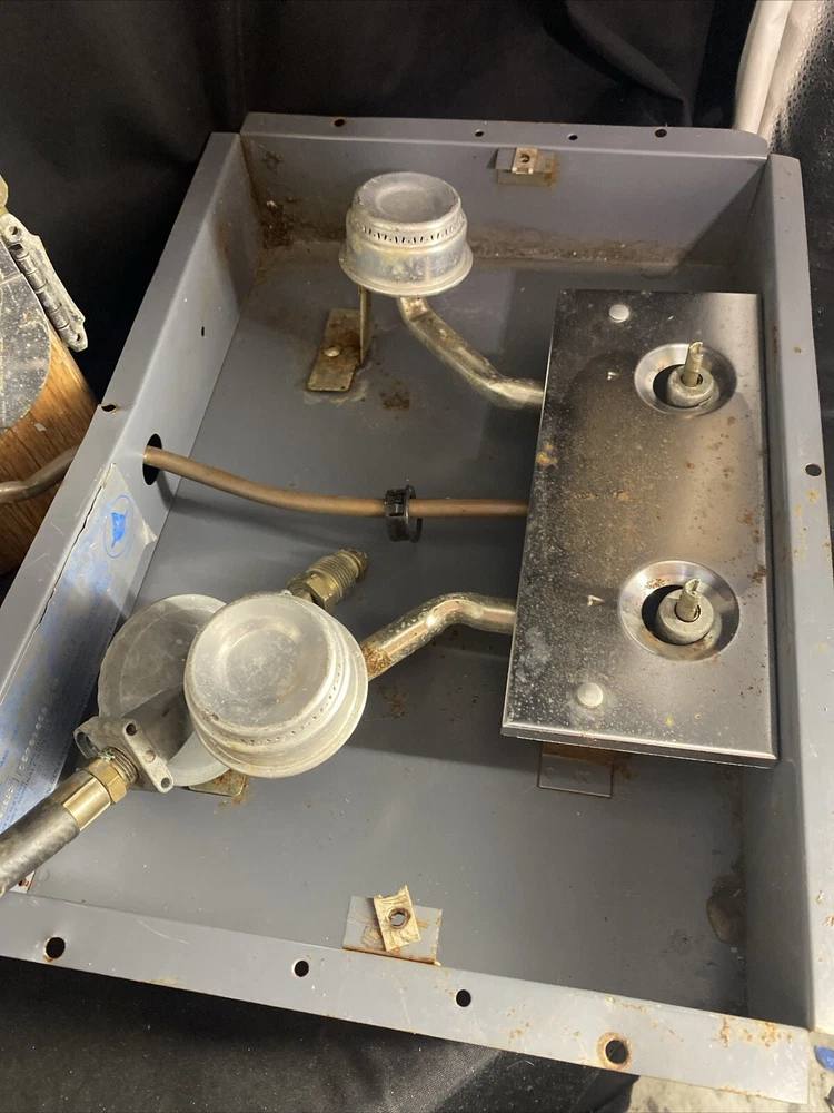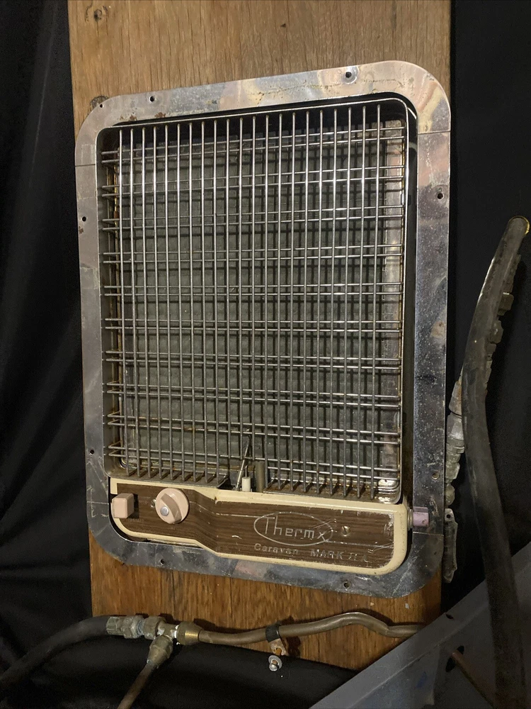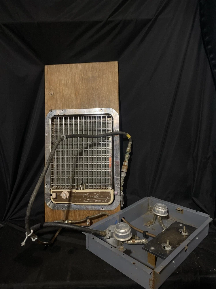 Wall heater and stove and gas lines/connectors All sold as is. Has rust/wear/scratches to the finish.