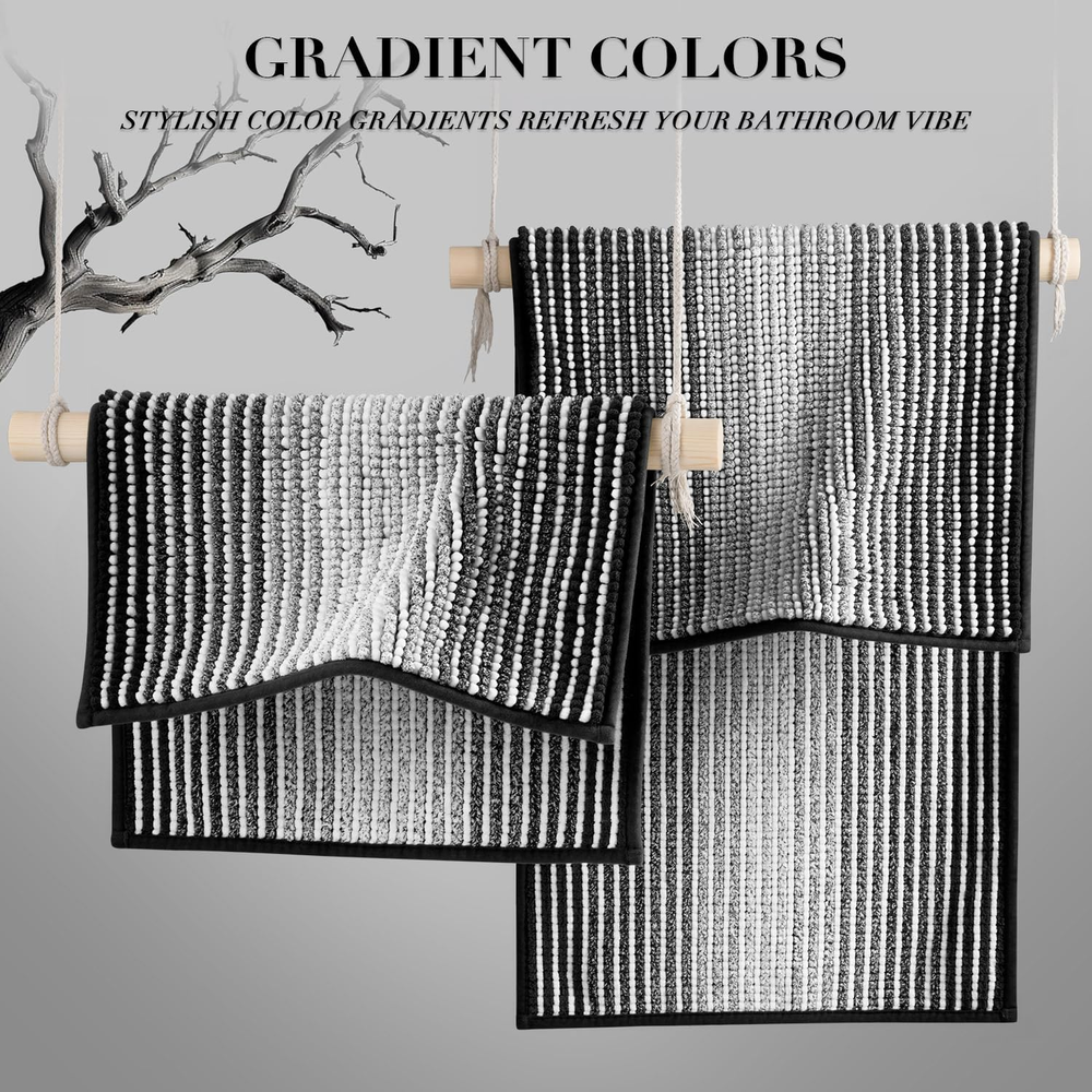 These bathroom rugs are amazing! Super soft and absorbent, they feel great underfoot. The non-slip backing keeps them securely in place, and the plush chenille material is so cozy. Perfect size set for any bathroom, and they’re machine washable—super convenient! Love the sleek black color too. Definitely a great buy!