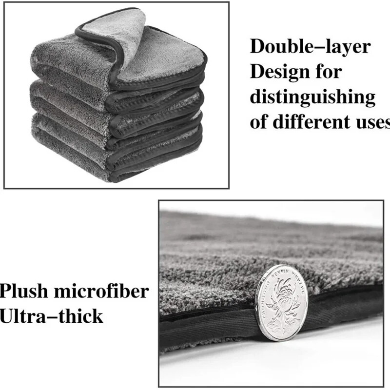Thick Car Wash Microfiber towel Auto Cleaning Drying Towels Detailing Polishing Cloth Rags Car Care Wash for Kitchen glass Package Content: 1xCar Cleaning Towel 1.【Two-Layer Plush Microfiber】The water absorbing car drying towel have Two-Layer Plush Microfiber, which can absorbs two times more than traditional cleaning microfiber, so you can greatly reduce the drying time 2.【500gsm Super Absorbent】:icrofiber cloths' density up to 500gsm, High quality microfiber drying towles is super softy, absorbs moisture and quickly drying the surface of your car. With its softness greatly extends its durability and using life 3.【No Scratches No Fluff No Fading】Made of non-abrasive and premium 500 gsm double-layer plush microfiber,not leave scratches or lint on paintwork, glass or mirrors; no fading after first washing, are super softer, and reinforced silk edging make towel durable and long lasting 4.【Durable and Reusable】Can be machine washed and tumble dried. They are designed to extremely durable. High density can be repeatedly used,typically they can be washed several hundred times, no shrinking and no fade without losing quality, Saving you money and not having to change towels frequently 5.【Multi-Functions Use】The car wash towels drying capabilities can be used not only for automotive purposes,perfect to use windows, tiles, dishes, mirrors ,indoor or outdoor for washing, waxing, dusting, polishing and drying your vehicles and household wares