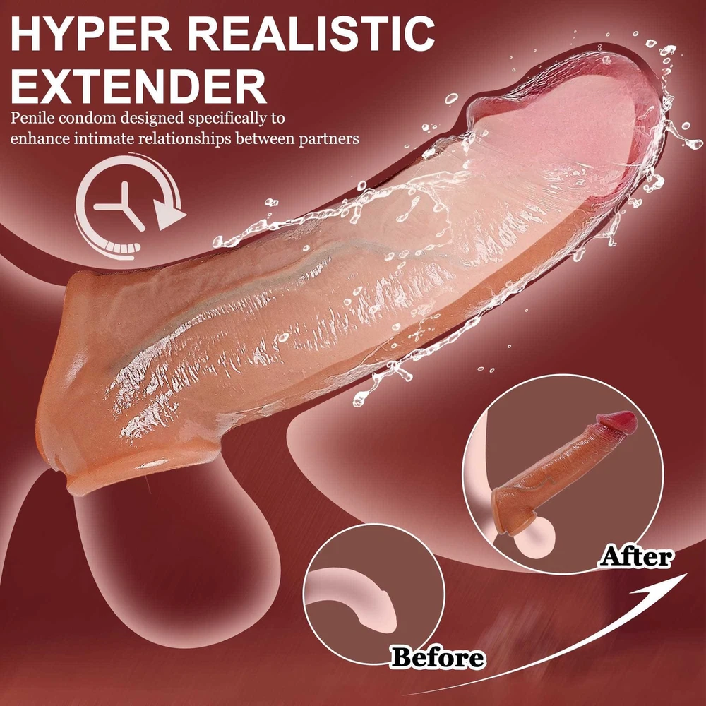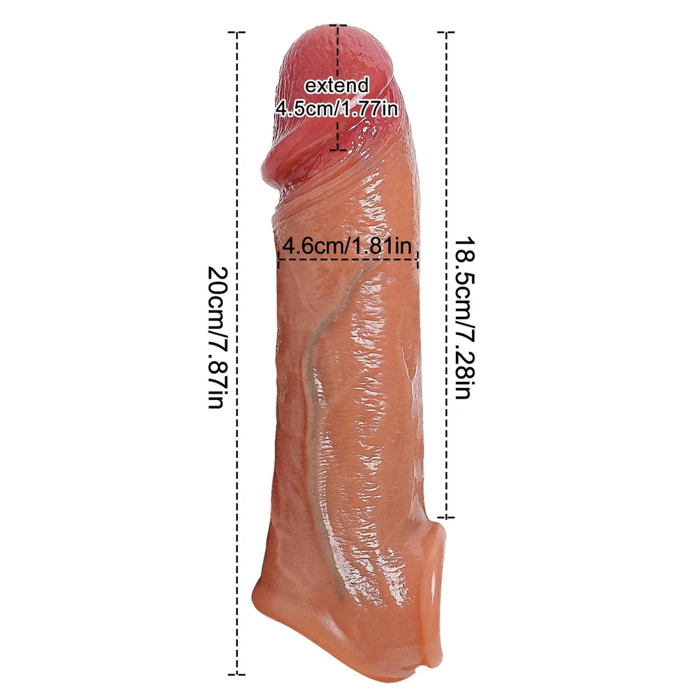 DISCREET PACKAGE Feature: •Material: Soft Silicone •Color: Flesh •Size: Total Length: 20cm Sleeve Length: 18.5cm Sleeve Dia: 4.6cm Weight: 205g •Package Includes: 1*Penis Sleeve •Kind Tips: The size is measured manually, please allow for slight measurement errors. Due to the color display of different monitors, the color of the photo may slightly differ from the actual product.