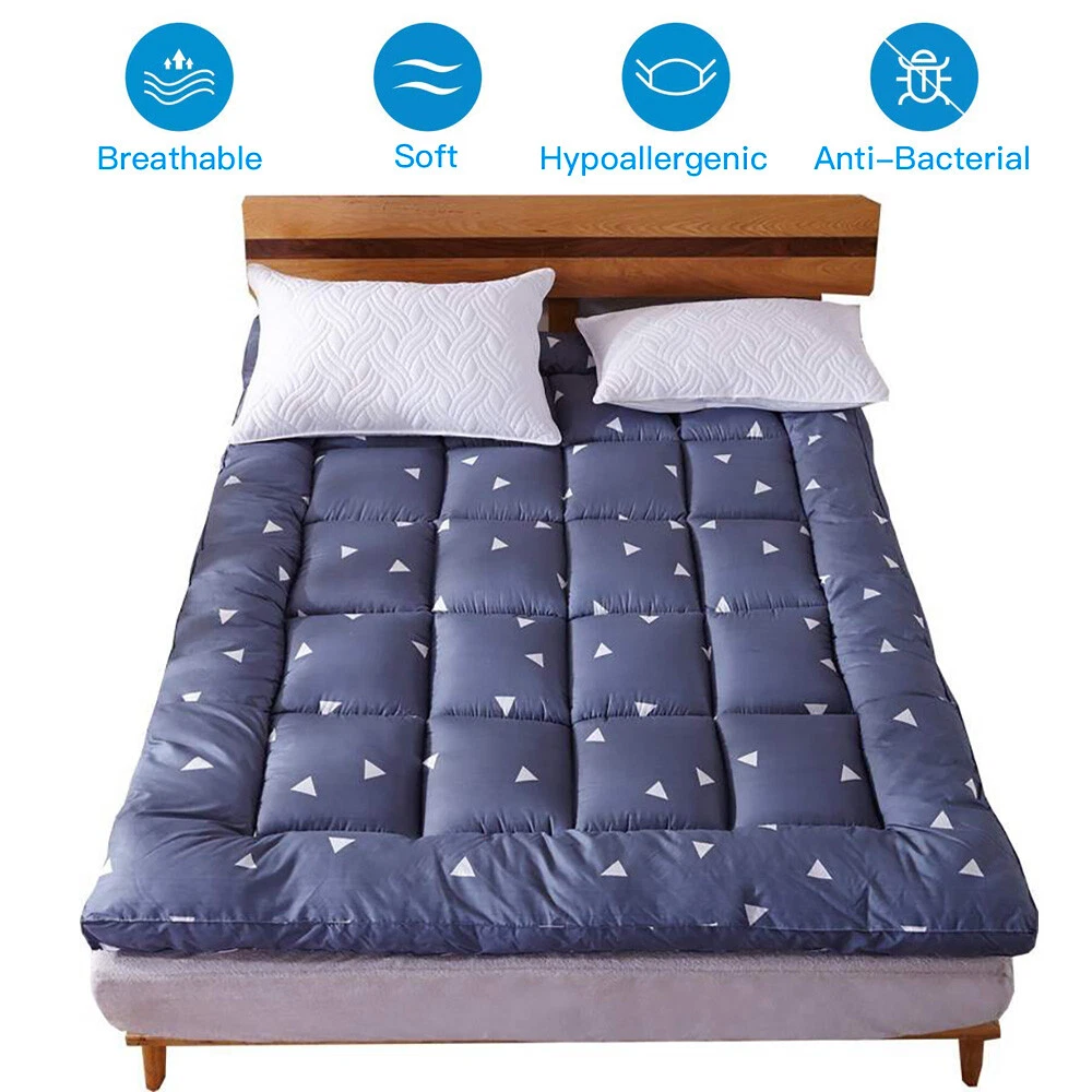 Thick Mattress Pad Quilted Cooling Mattress Topper Cover Breathable Filled Soft Feature: 【EXTRA THICK & LUXURY COMFORT】 Drift into a sounder, deeper sleep on this overfilled pillow top mattress topper. Filled with supportive 72D hollow fiber alternative fill, it distributes weight evenly and alleviate pressure points, allows you sleep soundly and wake up without back pain. Ideal for side, back or stomach sleepers. 【Ergonomic Design】 Unique ergonomic design, scientifically improve human sleep, the thickness of the mattress is 10cm to reach the human body comfort value, the force is uniform, and the support is good. You will not feel rigid during sleep, ensuring your sleep quality. 【COOL & BREATHABLE】 The mattress cover is made from polyester fiber combed top surface features good ventilation and distributes heat to help regulate temperature. It will wick away sweat and keep you cool and dry. Reduce hot feeling caused by memory foam mattress or foam mattress topper. 【Perfectly Fits Mattress】 4 power band elastic ensures a secure fit and grip on the mattresses.The elastic fabric band will fit up perfectly to our mattress. 【Machine Washable & Easy Care】 Be it sweat or stains, you will never get them out of memory foam topper or expensive mattress. This mattress topper will take care of them all. If it gets dirty, just throw it into a commercial washing machine, it will come out fluffy and clean after washing and drying. Specification: Cover Material: polyester fiber Filling Material: 72D hollow fiber Color: White, Gray,Pink, Coffee,Triangles Dimensions : Size Length Width Height Twin 74.8" 39" 3.9" Full 74.8" 54" 3.9" Queen 80" 60" 3.9" King 80" 78" 3.9" Package included : 1 X Mattress Pad (Pillow is not included) On Apr 24, 2023 at 08:43:10 PDT, seller added the following information: