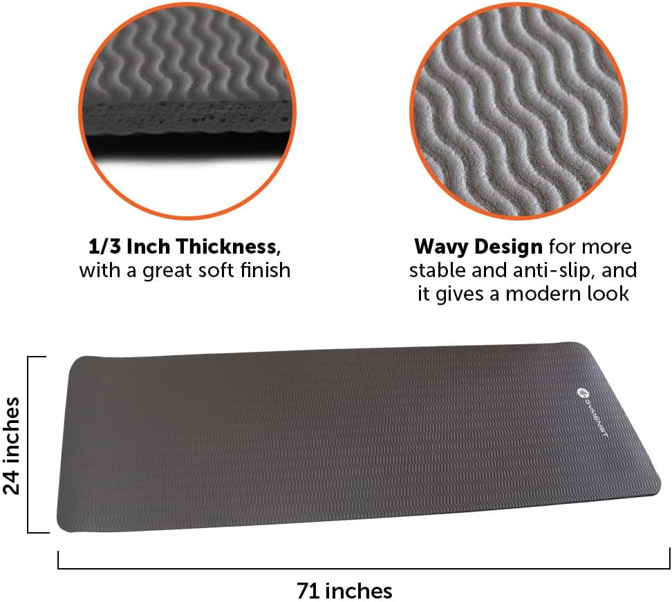 Thick Exercise Yoga Floor Mat Nbr 24 X 71 Inches Great for Camping Cardio Workouts Pilates Gymnastics (Black) Great for any workout that needs a mat, Yoga, Pilates, Gymnastics also great for camping or just relaxing and tanning by the beach This Is great outdoor and indoor mat, ideally to use as a floor carpet in your bedroom or for your pet to relax and play on it High performance, Soft textured surface, Great comfort, provides cushioning for your body, when laying down on our mat you feel the softness that will make you feel relaxed Mat Dimensions: 71 inches long, 24 inches wide and 1/3 inch thickness, With a great soft finish DETAILS:Great for any workout that needs a MAT, Yoga, Pilates, Gymnastics also great for camping or just relaxing and its even great for tanning by the beach.Our WAVY DESIGN YOGA MAT will be more stable and anti slip compared to the mats that are plain or have straight lines, and gives it a more modern look.FREE CARRYING STRAP INCLUDED!This Is great outdoor and indoor MAT, ideally to use as a floor carpet in your bedroom or for your pet to relax and play on it.Soft textured surface, Great comfort, provides cushioning for your body, when laying down on our mat you feel the softness that will make you feel relaxed. Mat Dimensions: 71 inches long, 24 inches wide and 1/3 inch thickness, comes in different colors,This yoga is manufactured from the so-called Clean NBR, made from Eco-conscious ingredients. As a result, this is versatile and highly durable yoga mat is an excellent choice for any kind of practice, and if durability is an issue, you could always recycle it, since it's so neutral to the environment. Extra thick and soft, this mat enables comfortable yoga practice by providing cushioning for your knees, ankles, and other sensitive areas.Absolutely not toxic - made of Eco-conscious materials! Part Number unknown Warranty Description ALL OF OUR PRODUCTS HAVE A 1 YEAR WARRANTY FROM THE DATE THAT IT WAS PURCHASED Item Dimensions LxWxH 71 x 24 x 0.33 inches Color Black Item Weight 1.8 Pounds Material Blend Style Yoga Mat; Exercise Mat; Workout Mat; Package Weight 1.13 Kilograms Sport Type Yoga; Exercise Suggested Users Unisex Adult Product Care Instructions Hand Wash Only Skill Level Advanced, Beginner, Expert, Professional Included Components Carrying strap, Yoga Mat Model Name Thick Exercise Yoga Floor Mat Product Dimensions 71"L x 24"W x 0.33"Th Item Package Dimensions L x W x H 25.75 x 7 x 6.4 inches Size 24 x 71 inches 7.0 inches x 25.75 inches x 6.4 inches. Weight: 1.13 kg Shipping from the USA All of our products are shipped from the USA, ensuring quick delivery to your destination. Payment We offer the following payment methods: PayPal, credit card, bank transfer, and eBay's secure payment system. Free Shipping & Free Returns Shipping within the USA is FREE. Additionally, any return is absolutely free for you. Risk-Free Purchase You have the option to return an item within 30 days without any justification. We cover the return shipping costs! Fast Shipping We ship immediately upon receipt of payment. Generally, the package is delivered within 2-3 days in the USA. If it takes longer, we will contact you. Quality and Costs Made in Europe, USA, China No customs fees or additional charges Total satisfaction guarantee Invoice with declared VAT available upon request in .pdf format Feedback Your feedback is very important to us. After you pay for your purchase, you will automatically receive positive feedback from us.