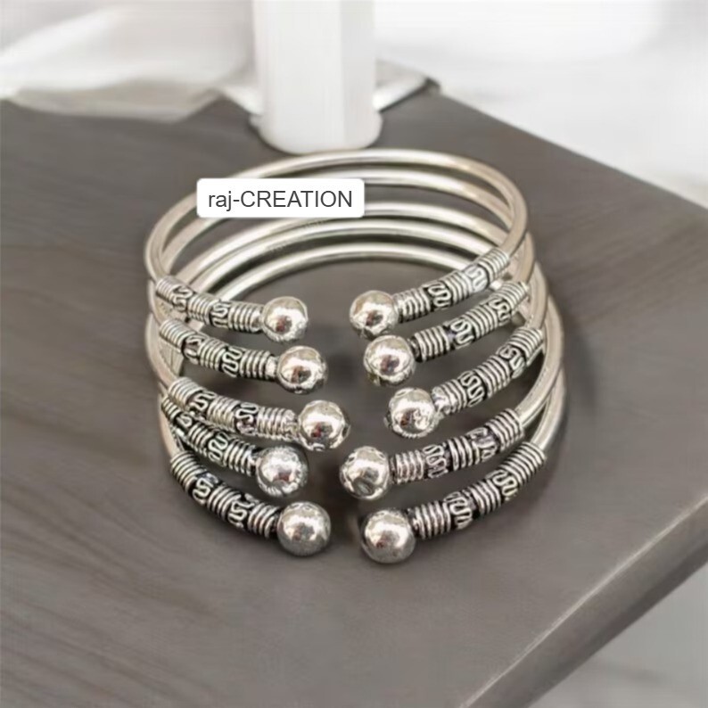 WELCOME TO OUR SHOP Thick West Indian Bangles, Gift Shop, Set Of 5 Bangles, Sterling Silver Bangles, Bangles, West Indian Silver Bangles, Silver Boho bangles, Material: 925 Sterling Silver Bangle Size: All Size Style: Nail Wrap Bangle Brand: Handmade Bangle You will receive a Bangle like the one in the pictures. This Bangle have 925 Stamp. Suitable for use in everyday situations, or can also be used as a gift. Unique design will make a special attraction for the wearer. I make my jewelry with passion and love. The perfect gift for a Special occasion. We also accept All orders.