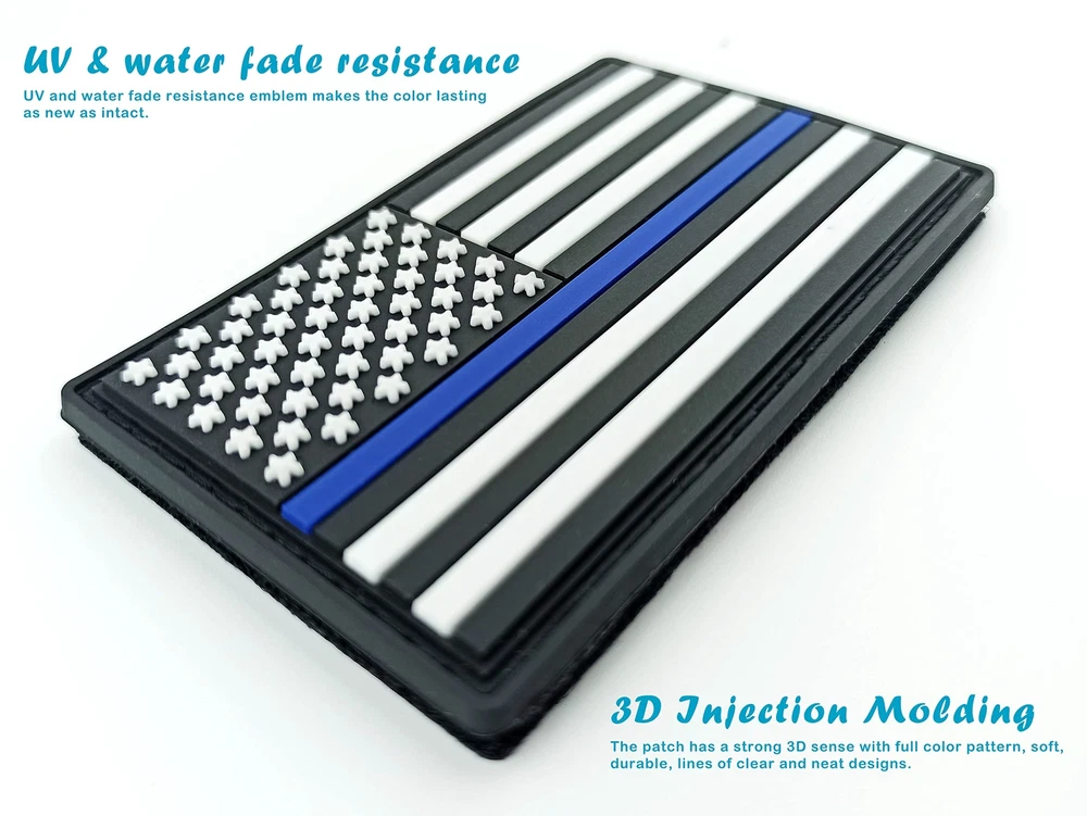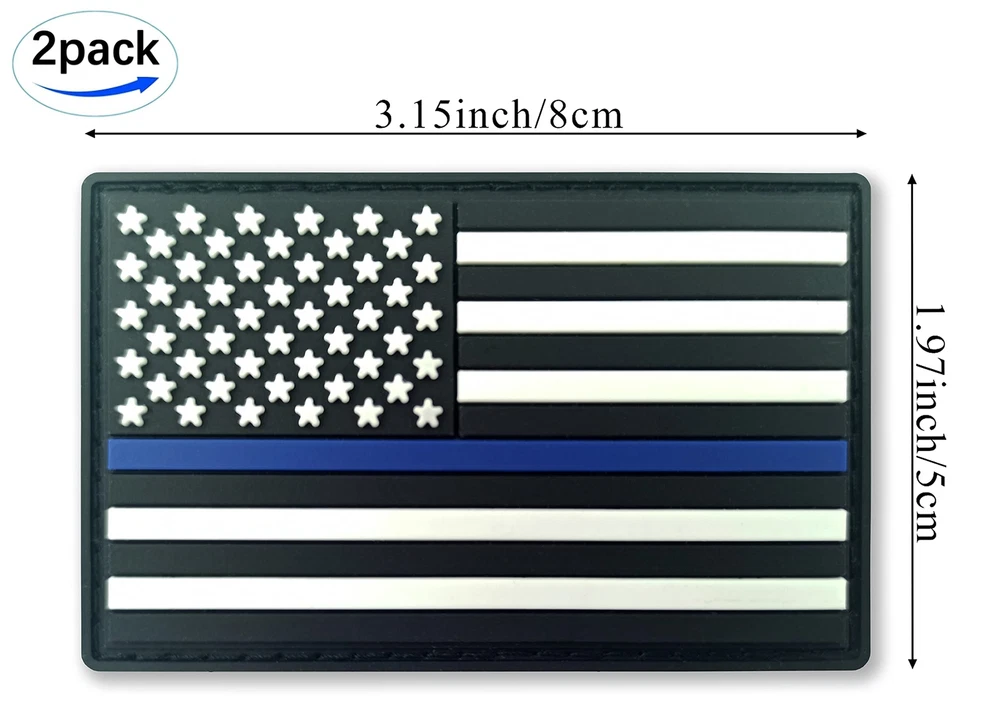 patches are suitable for Military Uniform, Tactical bag, Jacket, Team, Backpack, Hat, etc. The hook and loop backing combination allows the patch to be attached to any textile. It is worth if you get one. The PVC patch is made of advanced 3D injection molding process, which is bright and durable, easy to disassemble and clean. FEATURES: Set of 2 thin blue line American patches with hook-fastener backing per pack. 3.15 x 1.97 inch/8 x 5cm in flag size. the right size allows it to be sewn into any garment. VIVID COLOR and DURABILITY: UV and water fade resistance emblem makes the color lasting as new as intact. US police patch features hook and loop fasteners backings that can be sewn to any hats, backpacks and uniform and easy to remove, wash or replace other types. EXQUISITE WORKMANSHIP: Laser cutting makes loop side the same size as rubber tactical patch. The tactical patches are made from premium PVC and advanced injection molding process makes it has a strong 3D sense with full color pattern, soft, durable, lines of clear and neat designs. Soft rubber allows it to bend freely without deformation. APPLICATIONS: Perfect decorations for military uniform, tactical bag, jacket, team caps, backpacks, tactical hats, etc. It's a great way to decorate your garment and add a simple patriotic touch to your belongings.