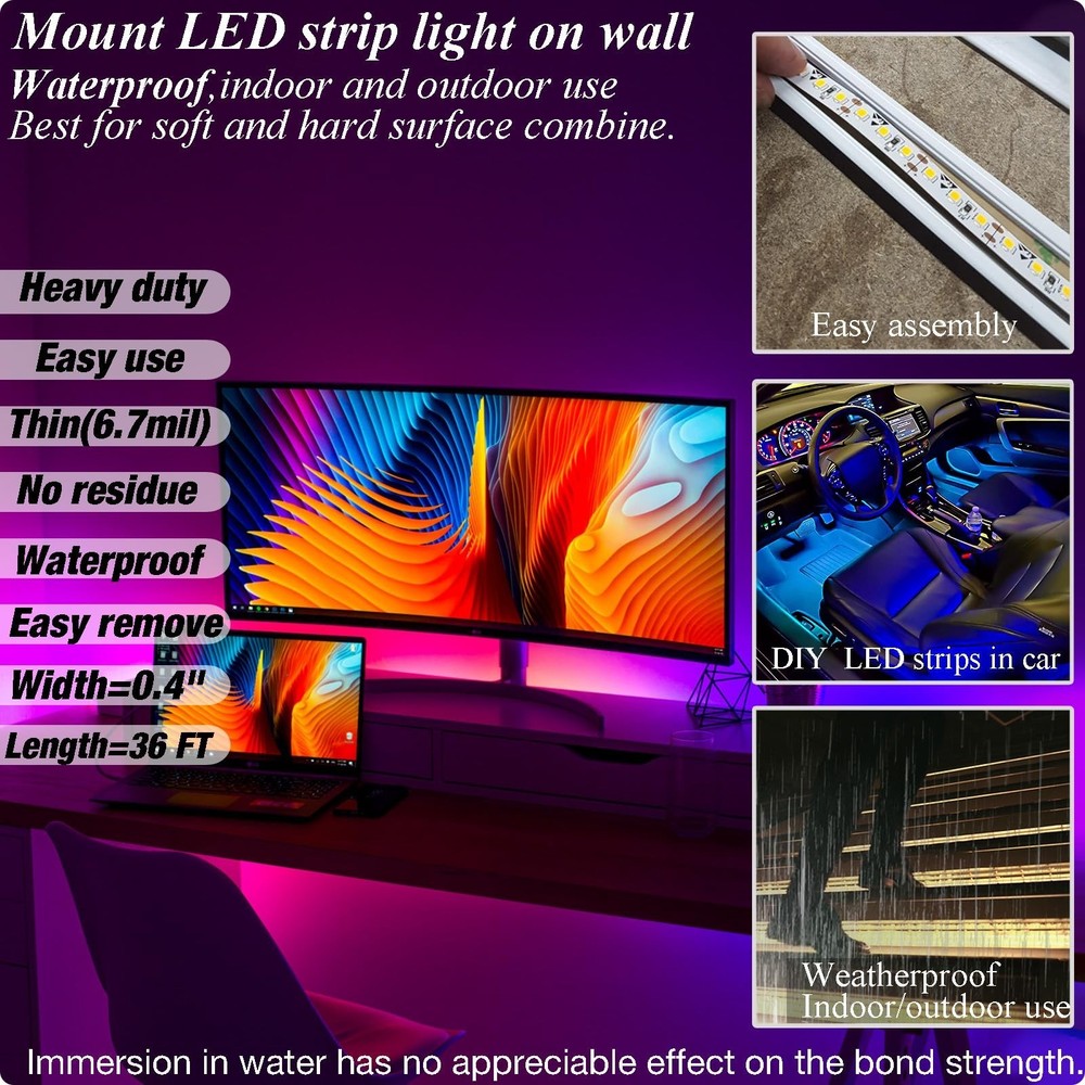 Thin Double Sided Tape,Waterproof,Heat Resistant,Removable,Clear 300LSE Adhesive Strips for Stick Led Strip,Poster,Scrapbook,Car,Art,Fabric,Electronic,Indoor and Outdoor,0.4 inch x36Ft Product Details Size: 0.4 inch x36 FT Brand: HIKIYEAT MPN: Thin double sided tape UPC: 717981457951 EAN: 0717981457951 Brand: HIKIYEAT Color: clear Material: Acrylic acid,Double sided tape Number of Items: 1 Recommended Uses For Product: Arts And Craft,Scrapbooking,Rugs,LED strip lights,Posters,Car Decor,Festical Decor, Outdoor, Carpet, Indoor, Fabric See more Package Dimensions : 5.71 x 5.31 x 0.47 inches; 1.45 ounces Item model number : Thin double sided tape Date First Available : August 1, 2023 Manufacturer : Youchuang Country of Origin : China Best Sellers Rank: #12,635 in Industrial & Scientific (See Top 100 in Industrial & Scientific) #19 in Adhesive Transfer Tape #19 in Adhesive Transfer Tape Customer Reviews: 4.2 4.2 out of 5 stars 140 ratings Multipurpose--This two sided tape heavy duty is extensively used for crafts,led strip lights,scrapbooking,rug, Electronic maintence,easy to use. Indoor and outdoor use,at home or in your garden or under water Features--300LSE is a ultra thin tape,thickness is 6.7mil(0.17MM),strong adhesion. Transparent and waterproof.Work temperature is between -40 to 200 F (-40 to 93 C).There is no glue remain once you remove this tape Easy to use-- Easy to pull out of the double sided adhesive tape roll, use scissors to cut and install. Its easy to remove by hand if you want.Takes one minute to stick a common size of poster on the wall Applicable--This 2 sided tape can bond many materials ,such as metal, leather, vinyl, glass, marble, paper, plastic...... Especially it have good performance to PTEF, polyethylene, polypropylene.Great for crafts or DIY your automotive decor or prototype assembly or repairment of electronics. Application Techniques--This clear double sided tape heavy duty has very high initial adhesion and after applying it 72 hours the adhesion is the best.Ideal tape application temperature range is 70F to 100F (21C to 38C).The working temperature is -40 to 200 F