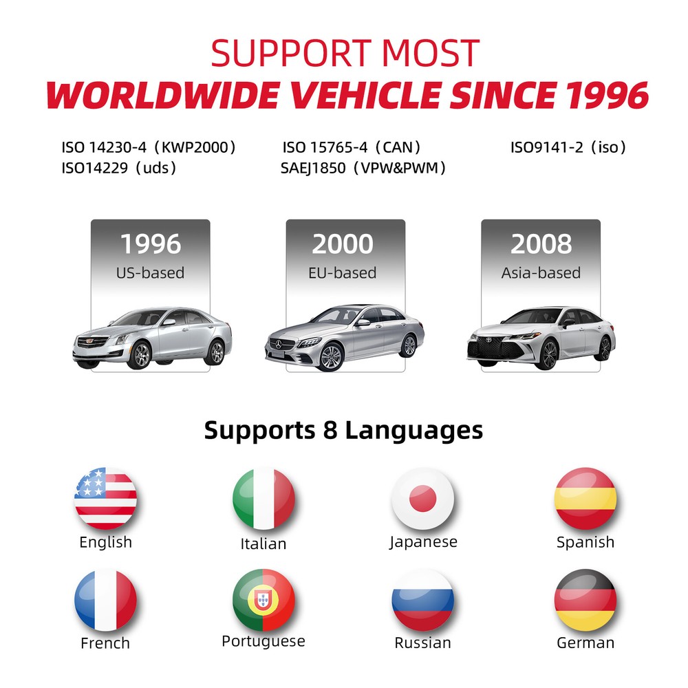 THINKOBD 100 Description THINKOBD 100--DIY OBD2 Scanner:featuring all modes of OBDII functions, DTC Lookup, Plug and Play etc., it is truly the ultimate entry-level choice in ease and affordability, enabling DIY users to verify repairs, road test, check state emission monitor status and solve basic engine and driveability problems. Comprehensive OBD2 Function Read extensive current, pending and permanent codes in OBD system quickly Clear detected fault codes and turn off the Check Engine Light efficiently View graphical live data of vehicle's computer module(s) for easy analyses View the vehicle's operating parameters at the moment a DTC is detected Read I/M readiness status to have a vehicle inspected for state emissions compliance Perform O2 sensor test to check fuel efficiency and vehicle emissions Read the results of on-board diagnostic monitoring tests for specific components/systems Retrieve the vehicle information of VIN, CINs, and CVNs completely Perform the component Test by allowing initiating a leak test for the vehicle's EVAP system Reset Check Engine Light THINKOBD 100 enables you to clear the engine warning light, after completing the full obd2 diagnostics with ease. The main purpose of this tool is to: Scan the engine systems; Tell you about the nature of the issue; Give an accurate reason why the engine check light is on; Help to detect any potential problems; Avoid excessive costs for unnecessary repairs. The warning light does not turn off till you fix the issue. DTC Lookup Support: Get DTC's definition in no time with the DTC Lookup function. Never waste time on Google or taking your dictionary out when you want to know the meaning of any DTC. For vehicle compatibility, feel free to go for customer service. You'll get a satisfactory reply in a short time. Compatibility Vehicle Coverage: THINKOBD 100 is compatible with most American, European, and Asian models manufactured as from 1996. It supports all OBDII protocols: KWP2000, ISO9141, J1850 VPW, J1850 PWM and CAN (Controller Area Network). Support 8 Languages: It also supports 8 languages that include English, Portuguese, Russian, Italian, Spanish, French, German, Japanese Other User-Friendly Features Plug & Play You just need to connect the diagnostic cable into the vehicle's DLC socket, and the code reader gets the power directly from the vehicle. Easy-to-use Keypad The reader has 4 button keypad buttons that make the menu super easy to scroll. THINKOBD 100 users can operate up and down, press OK or use the enter button pretty easily, with a solid and effective touch to their delight. Compact Design The reader has a compact ergonomic design which makes it fit in the palm quite comfortably, especially made for people who don't want bulky devices. Full Functions&Cost-effective THINKOBD100 includes OBDII full functions and cost-effective.It is worth way more than it costs. PACKAGE LIST 1*Main Unit 1*Quick Start Guide Warranty: One Year Warranty