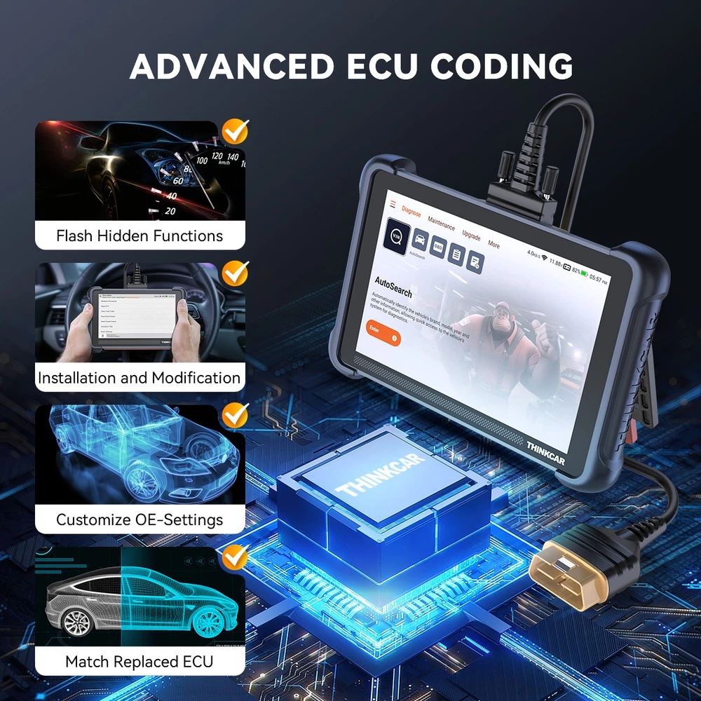 Why do you need the Think Scan 689? 1、 Full system diagnosis with lifetime free updates. 2、Supports 34 reset functions with lifetime free updates. 3、 E~CU coding + active test ( bidirectional control) with lifetime free updates . 4、Supports CAN FD and DOIP protocols. 5、Compatible with more than 100+ car brands. 6、Supports 28 languages : English, German, Spanish, French, Italian, Portuguese, Russian, Polish, Turkish, Dutch, Hungarian, Chinese (Traditional),Greek, Slovak, Romanian, Arabic, Croatian, Slovenian, Finnish, Japanese, Korean, Czech, Persian, Swedish, Serbian, Danish, Vietnamese, Bulgarian. 7、Lifetime technical support. Support for FCA Account Unlocking & SGW Chrysler is a vehicle owned by FCA and equipped with an SGW (Security Gateway) module. Only through FCA system certification can the SGW be unlocked freely and access to advanced diagnostic functions be obtained. Thinkcar has collaborated with FCA. You only need to purchase FCA-certified diagnostics on Thinkcar’s official website, and you can use the Thinkcar device directly to diagnose Chrysler vehicles (including brands Abarth, Alfa Romeo, Chrysler, Dodge, Fiat, Fiat Professional, Jeep, Lancia, Maserati, and Ram Trucks) with advanced diagnostic functions. Support CAN-FD and doip procotol [2019] [Chevrolet] [Onyx] canfd6 & 14 [2021][Chevrolet][Tracker] canfd6 & 14 [2021][Chevrolet][Suburb] ccma [2021] [cadillac] [esv staircase] ccma [2021] [cadillac] [climbing] ccma [2021 [gmc] [yukon xl] ccma [2021 [gmc] [yukon] ccma [2023] [chevrolet] [montana] canfd6 & 14 [2024] [buick] [electra e5] all [2024][gmc] [sierra] h/utcm 10 speed (mgm)/10 speed (mgu) [2021] [Chevrolet] [Onyx] [2021] [Chevrolet] [Tracker] [2021][Chevrolet][Suburb] ccma [2021] [cadillac] [esv staircase] ccma [2021] [cadillac] [climbing] ccma [2021 [gmc] [yukon xl] ccma [2021 [gmc] [yukon] ccma [2023] [Chevrolet] [mountain] [2024] [buick] [electra e5] all [2024][gmc] [sierra] h/utcm 10 speed (mgm)/10 speed (mgu) [2024] BMW f chassis and g chassis [2024] Mercedes-benz w206/w223 chassis [2024] Land rover jaguar More ... Support for ECU Coding – Lifetime Free Updates: The coding function is used to reflash the vehicle's expensive modules. It is used to re-program adaptive data for vehicle modules after repairs or replacement of vehicle parts; provide solutions for drivability issues, fuel efficiency, loss of power, error codes, durability of mechanical parts, etc.; lift restrictions and limitations; fully utilize the hidden functions of the car, such as changing the vehicle's horn sound, setting how many times the one-touch turn signal flashes, memorizing start/stop system settings, and much more. Support for Active Test ( Bidirectional Control) – Lifetime Free: When the actuator is normal, without using the vehicle's own controls, to achieve a significant increase in efficiency: [ Turn on radiator fan | Modulate throttle valve | Open/close windows | Operate mirrors | Turn lights on/off | Sound horn | Test door locks ... ] Support for 34 Reset Service Functions – Lifetime Free: Not all vehicles support all reset functions. Please send the vehicle model and year to customer service for inquiry. 1、Oil Reset: When the oil maintenance light is on, the vehicle must be serviced. After maintenance, the driving time and other data should be reset to zero to turn off the maintenance light and allow the vehicle system to start a new maintenance cycle. 2、Brake Reset: (1)When the brake pad wears to a certain thickness, the brake sensor wire is triggered, and the brake pad sensor wire sends a signal to the car's computer to prompt replacement of the brake pad. After replacing the brake pads, the brake system must be reset; otherwise, the vehicle will still give an alarm. (2)Reset situations requiring this service: A. Replace the brake pads and brake pad wear induction wire; B. Brake pad indicator light is on; C. Repair of a short circuit in the brake pad sensor wire; D. After replacing the servo motor. 3、BMS (Battery Management System) Reset: For a vehicle equipped with a battery management function, if the battery status is detected as faulty (aged or damaged), a fault code is stored in the ECU. After replacing the battery and performing a "BMS reset", the fault code can be cleared and the system can be re-adapted, based on the relevant information of the new battery as standard, allowing the monitoring unit to monitor it correctly. This avoids false alarms from instrument error messages. 4、DPF (Diesel Particulate Filter) Regeneration: During the operation of the diesel particulate filter, particles accumulate in the filter. When it reaches a certain level, this leads to a decrease in engine performance and fuel economy. It must be removed in a timely manner to ensure the DPF continues to function properly. (Note: This typically refers to initiating the regeneration process.) 5、SAS (Steering Angle Sensor) Reset: After the vehicle has been disassembled or parts related to the steering function have been replaced, the steering angle learning function must be performed. 6、TPMS (Tire Pressure Monitoring System) Reset: Only for vehicles without tire pressure sensors.When tire pressure is too low or there is a leak, when replacing or installing tire pressure monitoring devices, replacing tires, damaging tire pressure sensors, and for cars with tire pressure monitoring functions during tire transplantation, etc., a tire pressure reset is required after vehicle maintenance to turn off the tire pressure fault indicator. 7、IMMO (Immobilizer) Key Matching: When replacing the ignition switch key, ignition switch, combination instrument panel, engine control unit (ECU), body control module (BCM), and remote control battery, IMMO key adaptation is required. 8、ABS (Anti-lock Braking System) Bleeding: In case of replacement of the ABS system, ABS pump, brake pump, brake lines, and brake fluid, it is necessary to bleed the ABS system using the ABS bleeding f