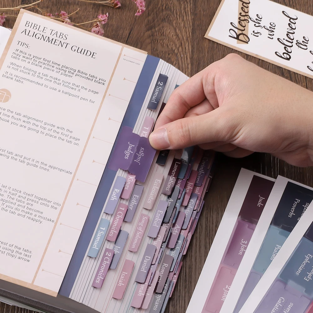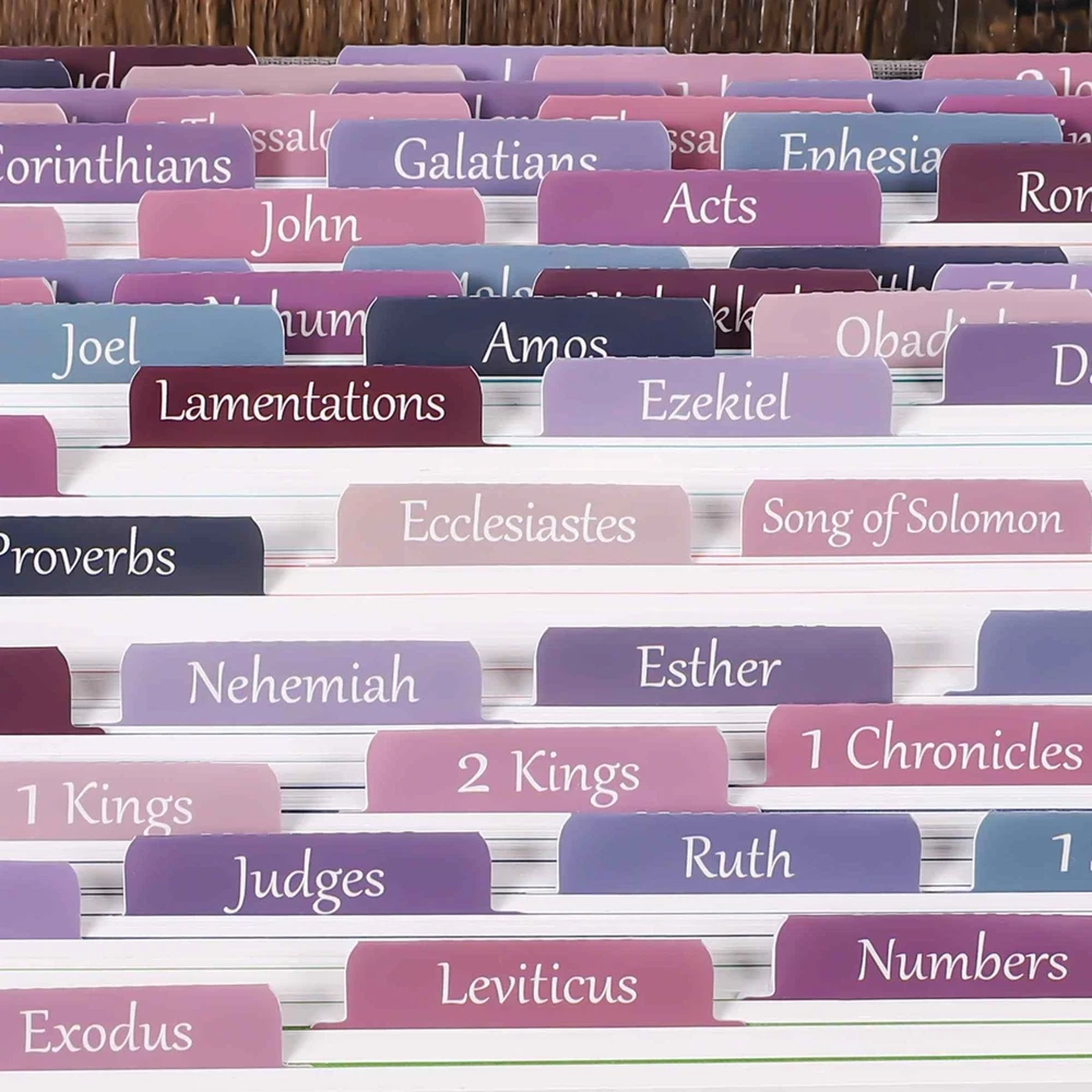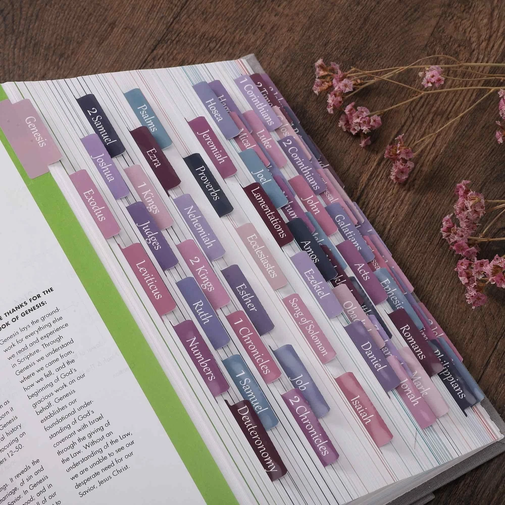 Thinkor Laminated & Repostion Bible Tabs, Large Print Christian Gift for Women and Men, Easy to Read and Apply Bible Journaling Tabs (Purple & Pink Print) [Easier to Apply & Alignment Guide Included] The self-adhesive bible tabs are perforated in the middle for folding, simply align them with the provided guide or place them creatively in your new Bible. [Easier to Reposition] Thinkor bible tabs are made of latest materials. If you accidentally attached one to the wrong page, you are able to carefully remove it without damage to the page and reattach it to the correct page. [Easier to Read in Large Print] Unlike previous small version Bible stickers, you can see the Bible table of contents without any magnifying glass or glasses. [Durable Laminated Tabs] The bible tabs are laminated with matte film, which is water-proof, tear-proof and durable. [66+24 Neutral Color Tabs] There are 80 bible index tabs in total, 66 tabs for old and new testament, 24 empty book tabs with unique design, which can be personalized or used to index the books in the Catholic Bible. Shipping We offer FREE shipping on all orders! We use a selection of shipping services such as UPS, FedEx, USPS etc. We only ship to the lower 48 states, no APO/FPO addresses or PO Boxes allowed. Local pickups and combined shipping options are not provided at this time. Return You can return a product for up to 30 days from the date you purchased it. Any product you return must be in the same condition you received it and in the original packaging. Please keep the receipt. Payment We accept payment by any of the following methods: PayPal Please pay as soon as possible after winning an auction, as that will allow us to post your item to you sooner! Feedback Customer satisfaction is very important to us. If you have any problem with your order, please contact us and we will do our best to make you satisfied. Contact Us If you have any queries, please contact us via ebay. We usually respond within 24 hours on weekdays. Please visit our eBay store to check out other items for sale! Thank you for shopping at our store.