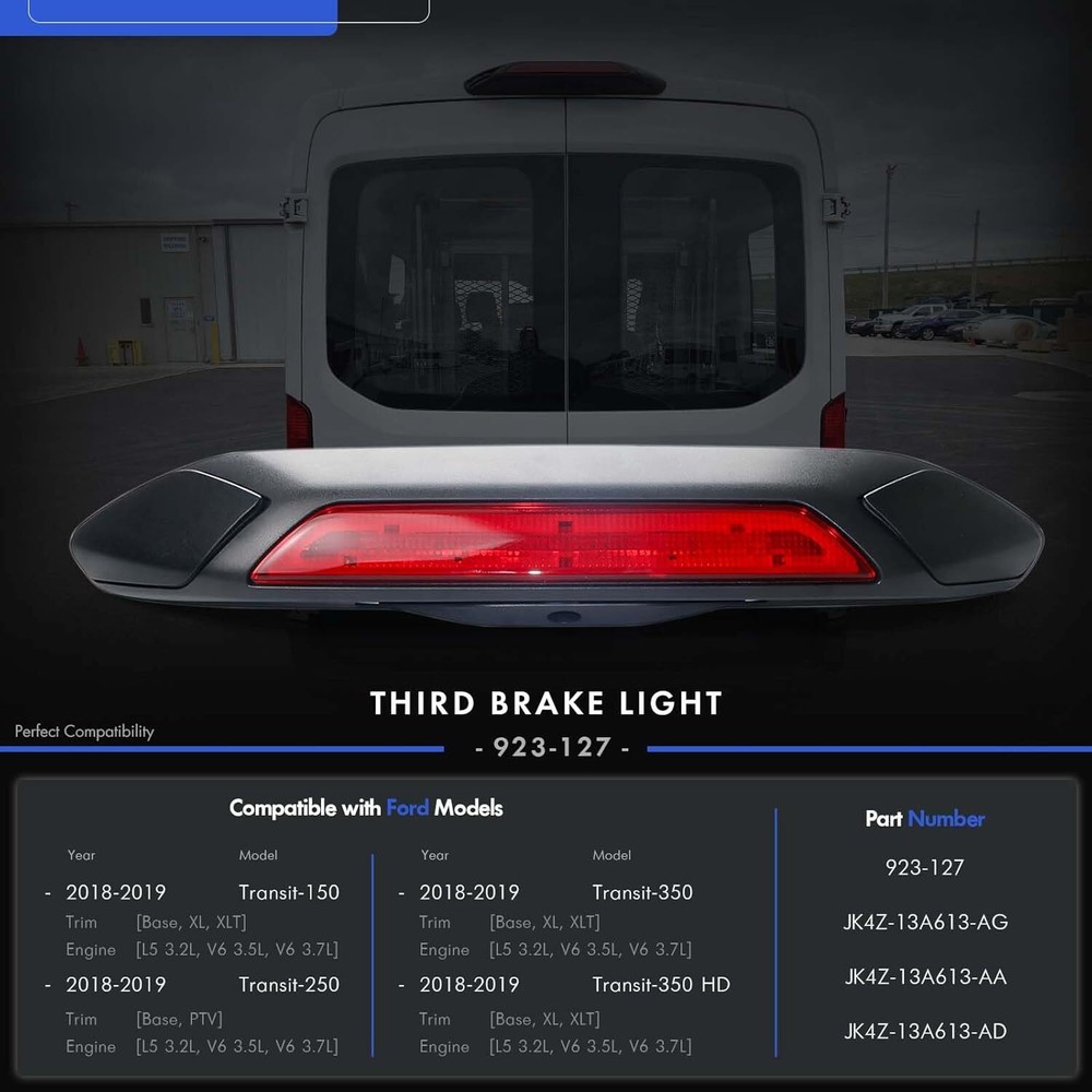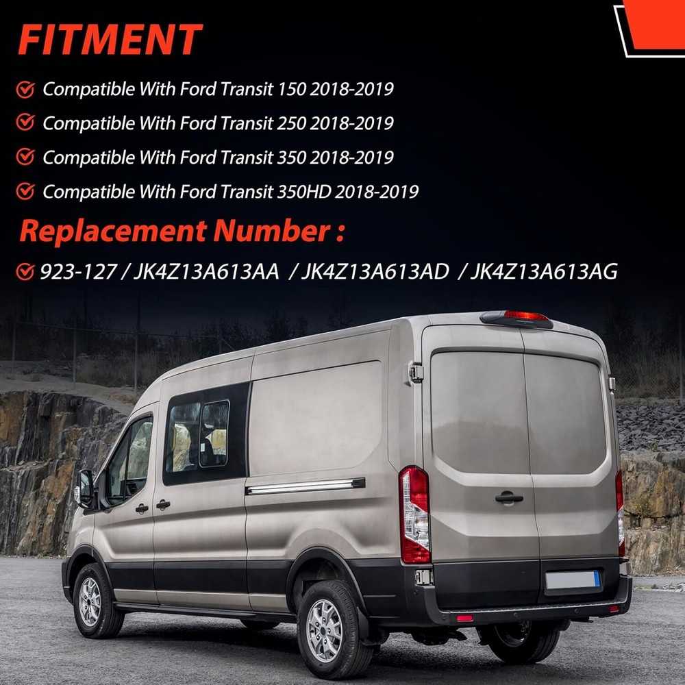 product Specification Specification: Condition: New Compatible Year: For 2018,2019 Color: As the picture shown Placement on Vehicle: Rear, Upper Replaces Part Number: For JK4Z13A613AA, JK4Z13A613AD, JK4Z13A613AG Lighting Technology: LED Fit Following Models: For Ford Transit-150 2018-2019 For Ford Transit-250 2018-2019 For Ford Transit-350 2018-2019 For Ford Transit-350 HD 2018-2019 Package Included: Comes with 1 PCS brake light (Black mount + Red lens) and 2 pcs third brake light trim cover. Feature? * [Easy to Install] : Please use screws to install. Direct replacement of the original parts. No splicing needed. More help on fitment are available upon on request. Professional installation is recommended for the functionality. * [Extraordinary Quality] : Made of high quality plastic to make the brake light durable; it can ensure the normal operation in outdoor conditions, including bad weather, reducing the risk of road traffic in bad road conditions. Express Delivery Time 1 We ship to worldwide,except Hong Kong,Taiwan,Macao,China,Guemsey,Puerto Rico and we do not ship to APO/FPO, etc. 2 Item will be shipped within 1-3 business day on payment received. 3 Items are shipped from China using Airmail,reach most of countries within 10-20 business days. 4 sDelivery time depends on destination and other factors,it may takes up to 20 business days. Payment Method 1 We accept Paypal only. 2 All major credit cards are accepted through secure payment processor PayPal. 3 Payment must be received with 7 days of auction closing 4 If you have bought multiple items from us,you can send us one payment for all the items instead of paying for them individually. When you click the Pay Now button,eBay will automatically determine if there are other items you have won of purchased from us and will combine them for your review. After-sales Policy 1 5 year warranty!30 days money back!Buy with confidence! 2 If you are not satisfied when you receive your item,please return it within 30 days for a replacement or money back.Please contact us before you return the item. 3 If item is defective in 3 months,we will send you a replacement without extra charger,or offer refund after we receive the defective item. 4 If item is defective after 3 months,you can still send it back to us.We will send you a new one after after receiving the defective item,but you have to pay the extra shipping fee. Other 1 We are not responsible for any custom duty or import tax. 2 We will leave Positive Feedback after receiving the payment.Please contact us if you are not satisfied with the item after receiving it. 3 All mails will be answered within 1 business day.If you do not receive our reply,please kindly re-sent your email and we will reply you as soon as possible. 4 Serious Buyer Only!Please place bid only if you agree with all the terms.