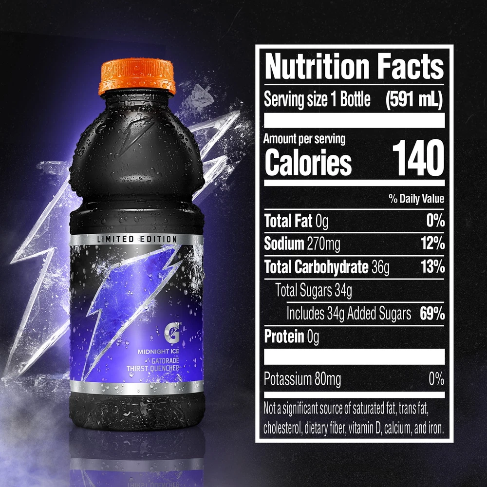 Quench your thirst with Gatorade Thirst Quencher Midnight Ice, a delicious energy drink that comes in a pack of 8 bottles, each with 20 fl oz. This drink is perfect for sports enthusiasts who need a quick and easy way to hydrate. With its fresh expiration date, you can enjoy a refreshing drink any time. The Midnight Ice flavor is a classic favorite, and the drink is made with high-quality ingredients to ensure that you get the best taste and nutrition. Whether you're hitting the gym or playing your favorite sport, this energy drink will give you the boost you need. Order now and experience the refreshing taste of Gatorade Thirst Quencher Midnight Ice.
