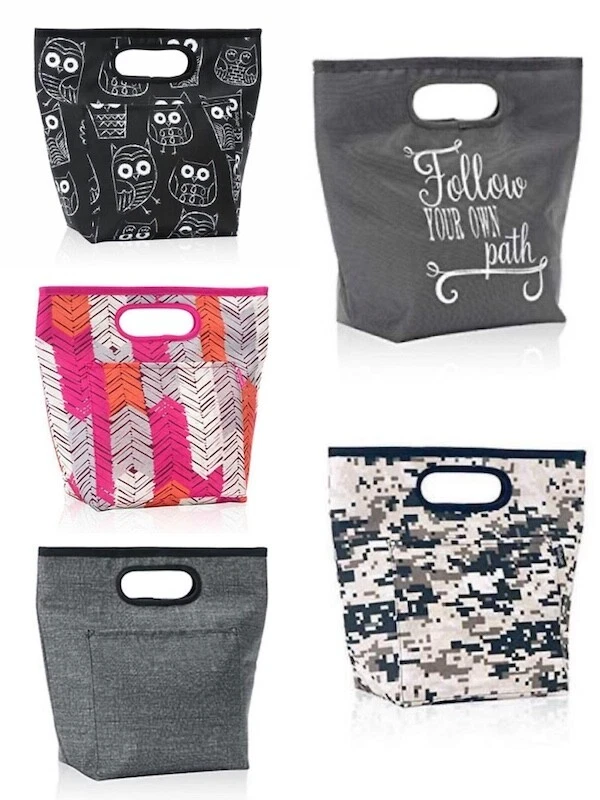 Go To thermal NO EMBROIDERY for all designs Please note: All the colors will be sent randomly, you are not able to pick the color, we will ship with all different colors if you buy more than one. Material: Nylon SIZE: 11"H x 8"L x 5"D When you think of the universal lunch bag, this is it. With clean lines a simple handle, this tote is perfect for every member of the family. Features a zip closure and an exterior pocket. Ideal for work, school, sporting events, road trips, play dates, fishing trips, pool days and more! Makes a great gift for teachers, neighbors, friends and anyone else who loves to lunch or snack! Machine washable and wipeable lining. Holds up to 10lbs. Print: Digital Camo, Charcoal Crosshatch, Feather Chevron, Owl Good If there is any questions regarding this item, please feel free to contact us~! RETURN POLICY: If you are dissatisfied with our item or service, then please follow the good eBay practice to contact us before leaving any feedback. We are committed to resolve all issues in a friendly and satisfactory manner. We always reply to messages within 1 business days. If you do not get a response from us, then please check your junk or spam mailbox. Original and return shipping fee will not be refunded or reimbursed under all circumstances. You must agree and acknowledge this term if you bid for this item. Therefore, please do not complain about having to ship back at your own expense. CONTACT US: We're here and ready to assist you with any question or concerns before or after your purchase Service time: Sunday to Friday 5:00pm--1:30am PDT(eBay official time) We do try to respond as quickly as possible. Due to time zone difference, please allow up to 1 business day to get your mail replied.