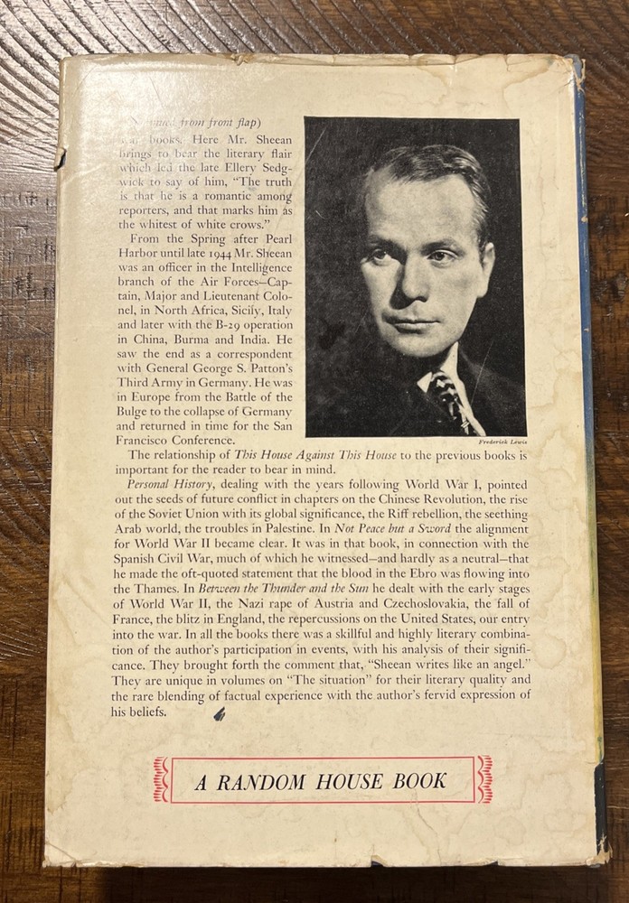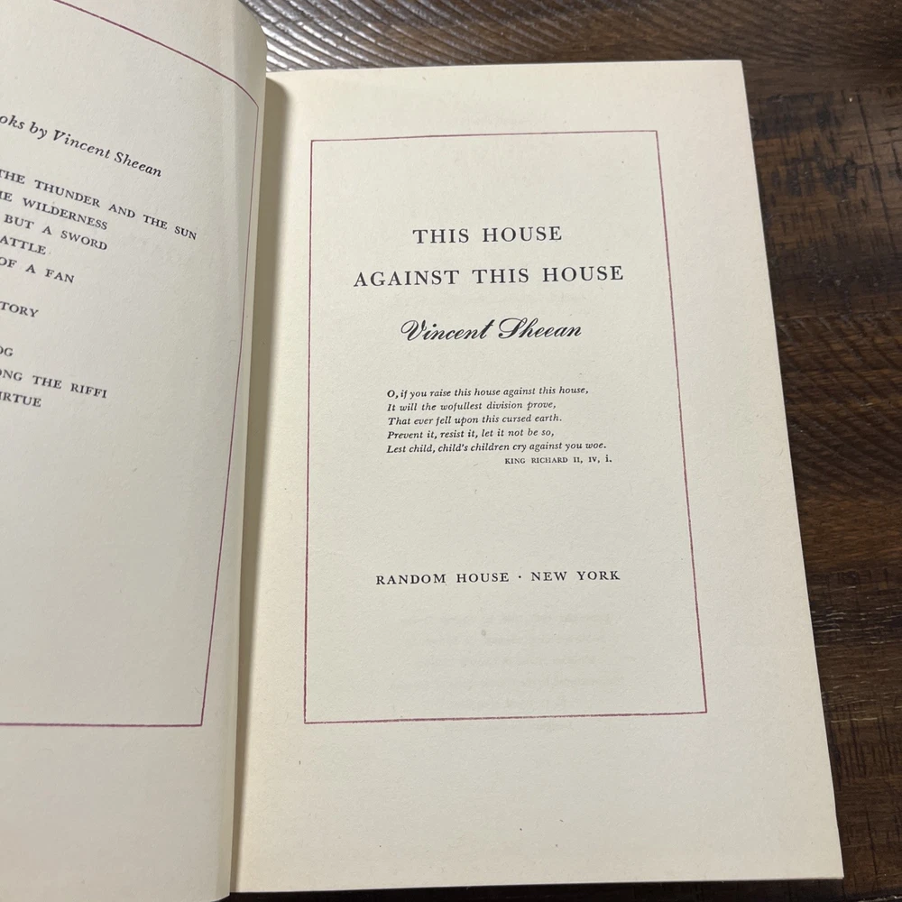 This House Against This House” by Vincent Sheean is a first edition hardcover book published by Random House in 1946. The book, written in English. SKU:67