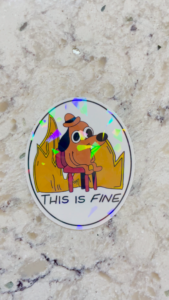 High quality waterproof This Is Fine Meme sticker perfect for pop culture lovers! These are very durable long lasting die cut stickers meaning they are versatile. They can go on laptops, phones, tablets, notebooks, tumblers, mugs, binders, and more! Available in gloss or holographic laminate and in small, medium, or large. Small - 1.1” x 1.3” Medium - 2.1” x 2.5” Large - 2.9” x 3.5” Sticker Care Instructions - Make sure to clean surface before placing sticker - Hand wash only, not dishwasher safe - Apply only to smooth surfaces - 1-3 day processing time - Shipping time is usually 1-5 days but varies due to USPS services and shipping procedures - Returns are accepted within 30 days