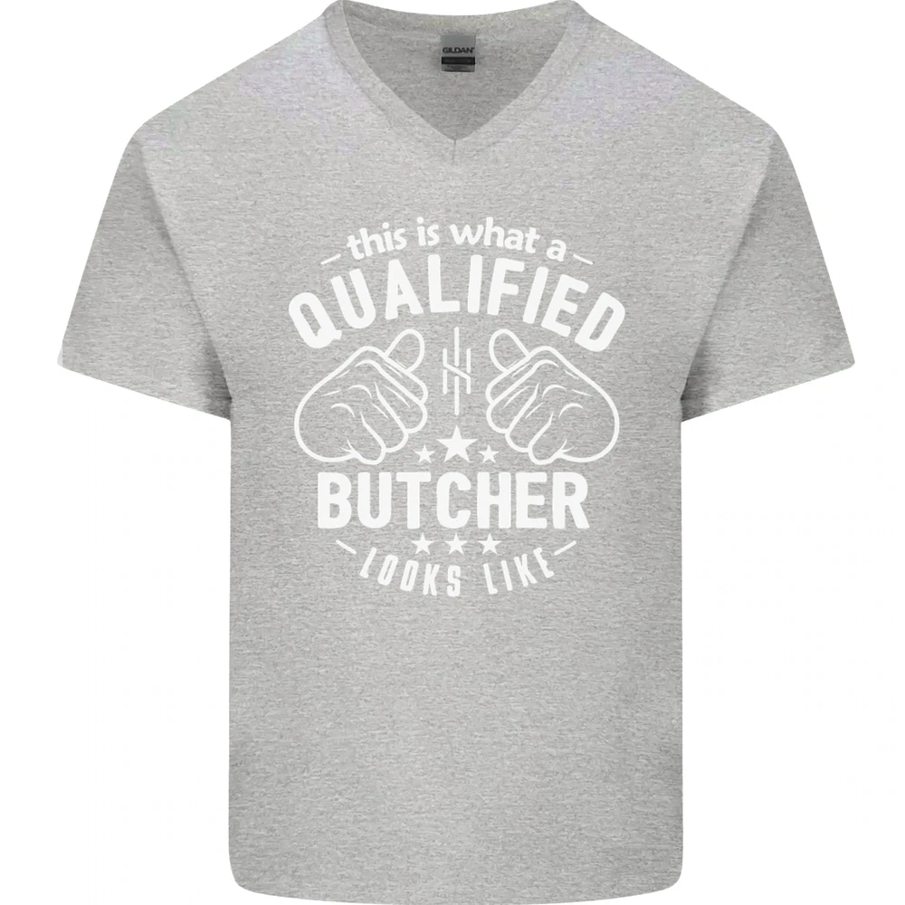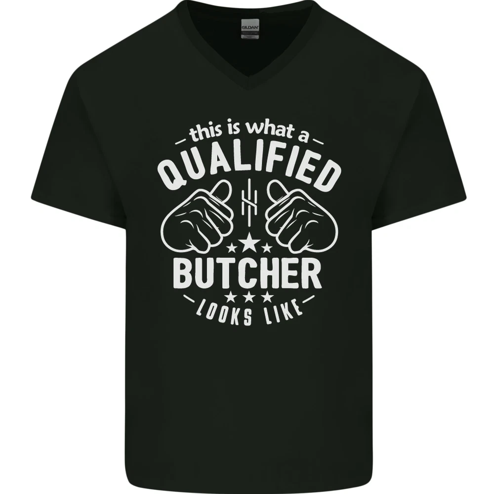 This Is What a Qualified Butcher Looks Like Mens V-Neck Cotton T-Shirt
