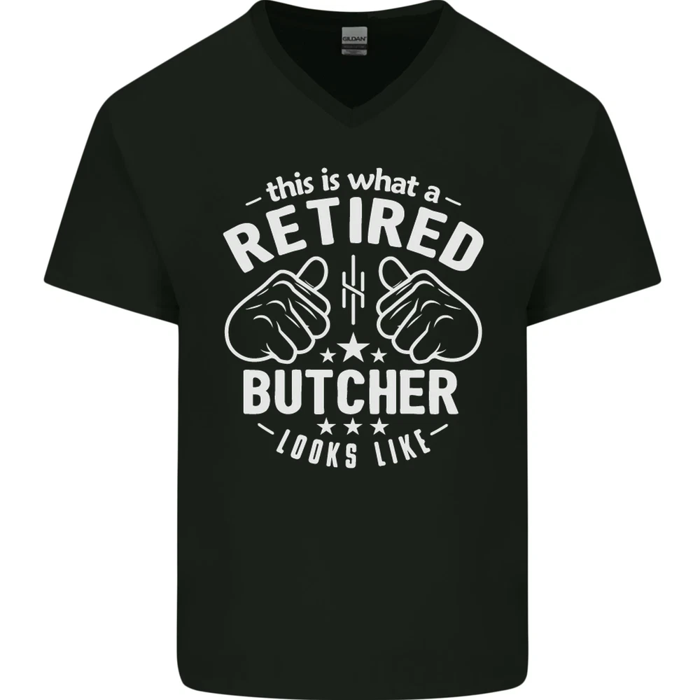 This Is What a Retired Butcher Looks Like Mens V-Neck Cotton T-Shirt