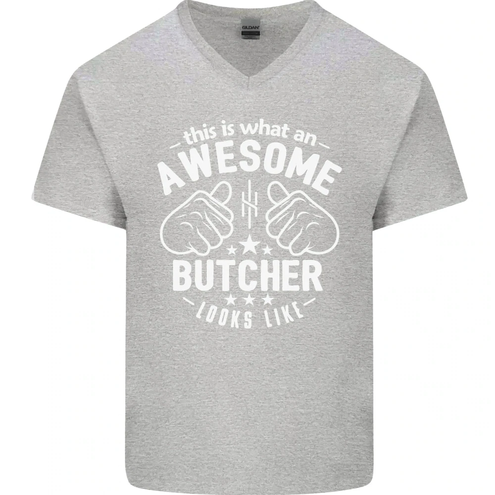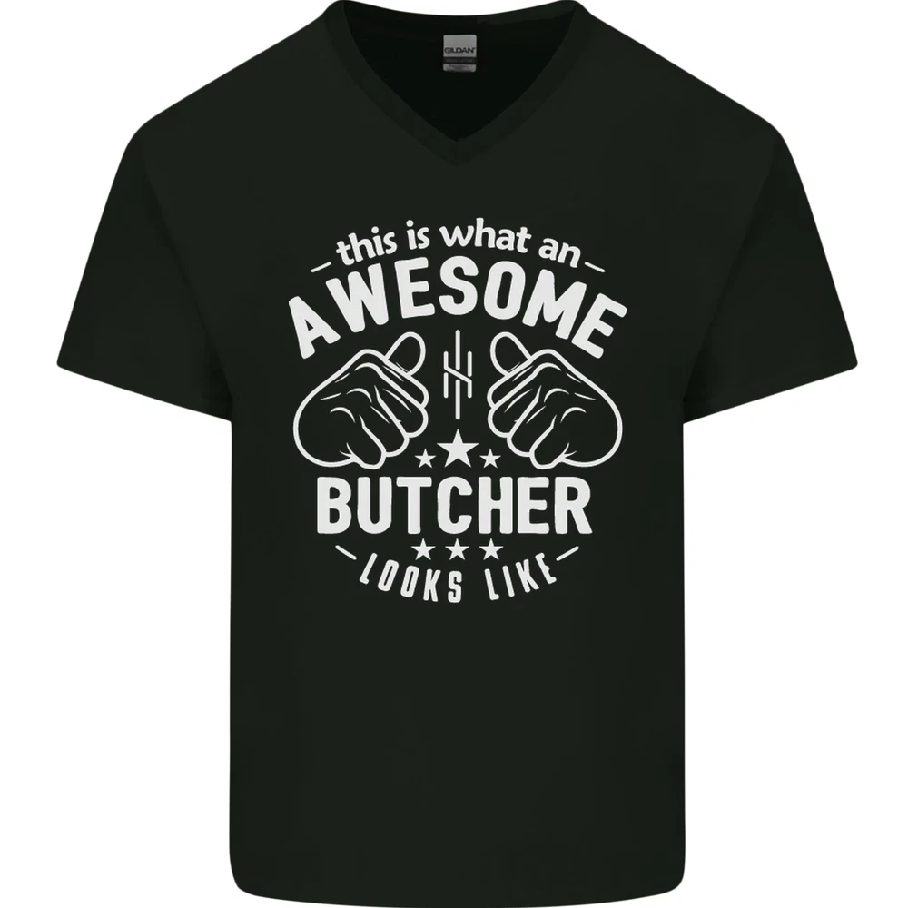 This Is What an Awesome Butcher Looks Like Mens V-Neck Cotton T-Shirt