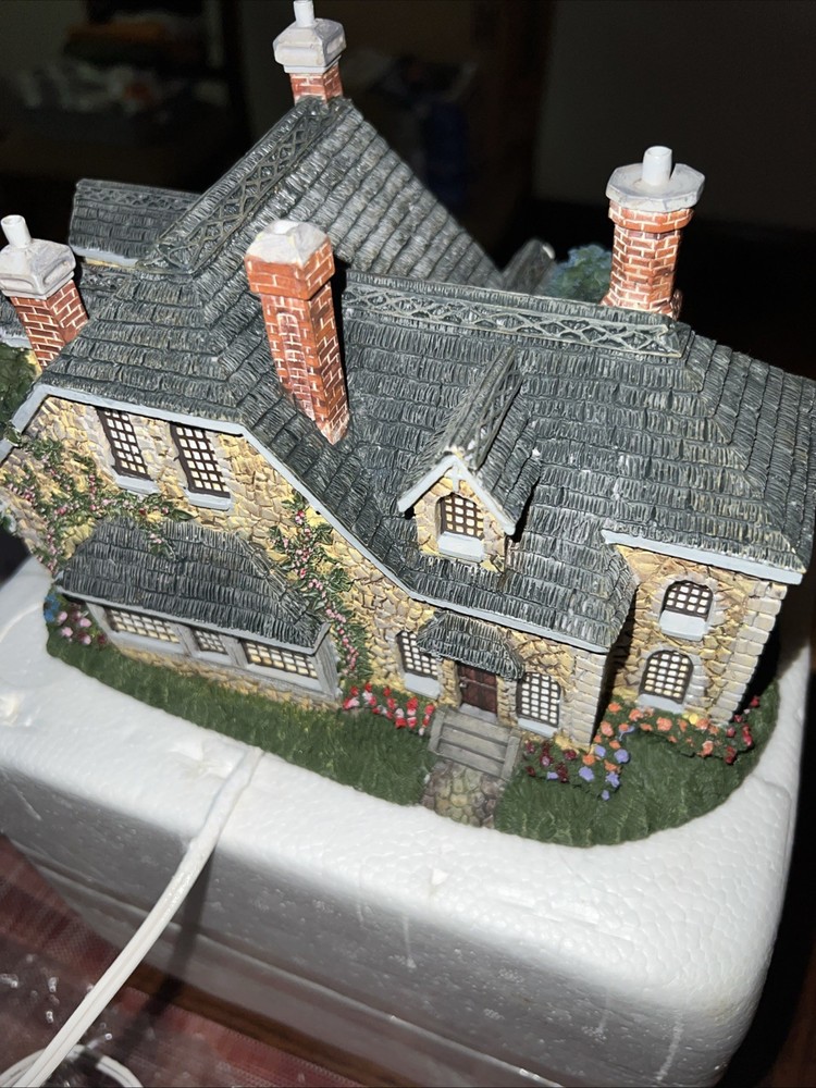 The Thomas Kincaid Hawthorne Village Spring Gate Manor is a beautifully handcrafted resin house from the Classic Collection. Featuring artwork by Thomas Kinkade, this piece captures the essence of spring with intricate details and a charming design. Perfect for collectors or as a sentimental gift for a special occasion, this unique village house adds a touch of nostalgia and elegance to any holiday or seasonal display.