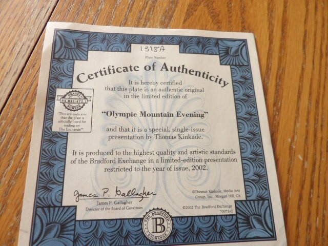 Thomas Kinkade 2002 Olympic Mountain Evening Collectible Plate Excellent Condition