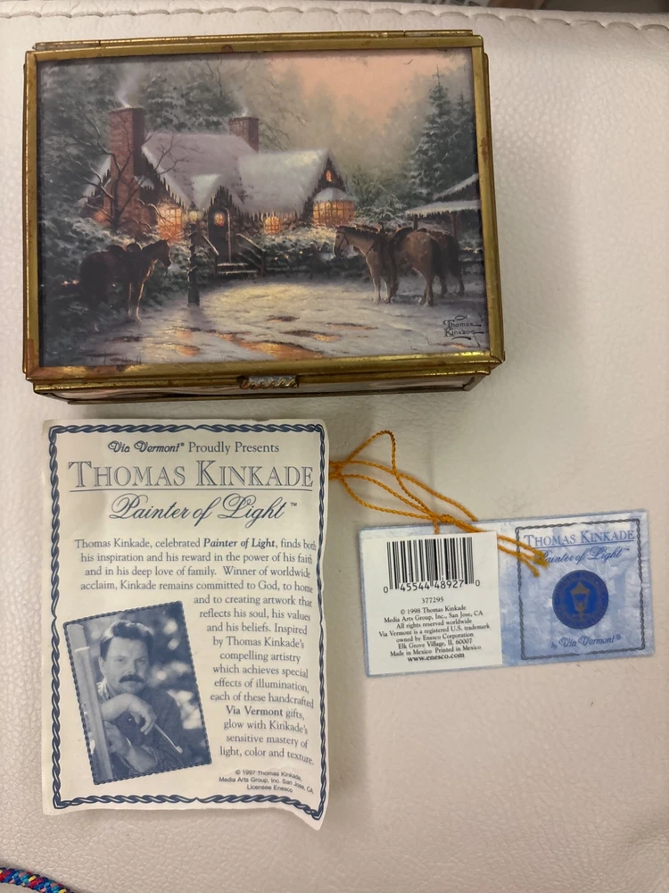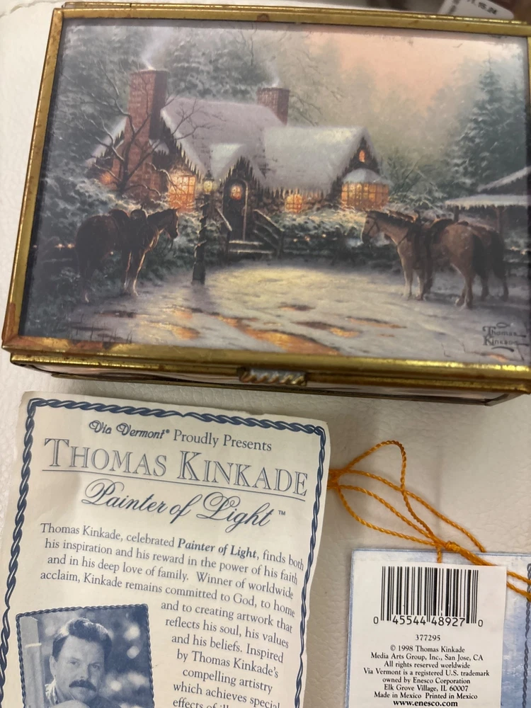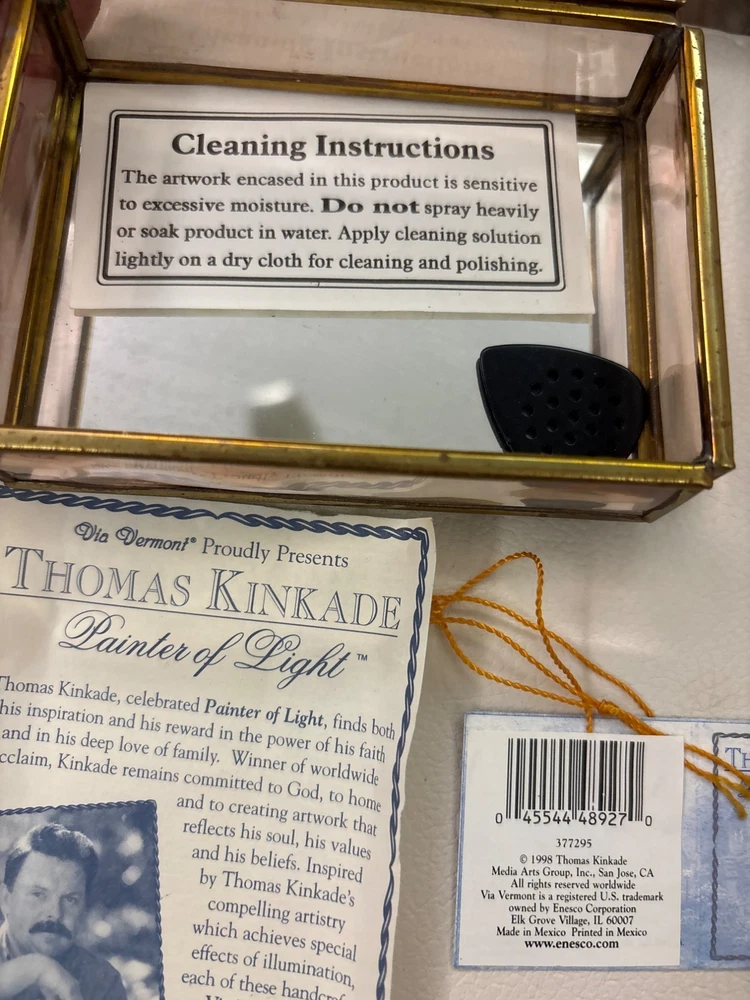 Thomas Kinkade Mirrored Trinket Box by Enesco, A charming collectible perfect for holiday decor or gift-giving. Features intricate designs and comes with original paperwork. No Flaws and simply beuatiful • Exquisite craftsmanship • Mirrored surfaces • Original paperwork included • Perfect for Christmas decor • Collectible item • Elegant design Aged on the outside but still looks great Please see all photos as they are part of the description. Always open to reasonable offers! Jewelry is never cleaned as we want to preserve its timeless beauty and aging. Vintage items tell a story and we would like you to see that story. It also allows the new owners to clean in a way that is right for them.