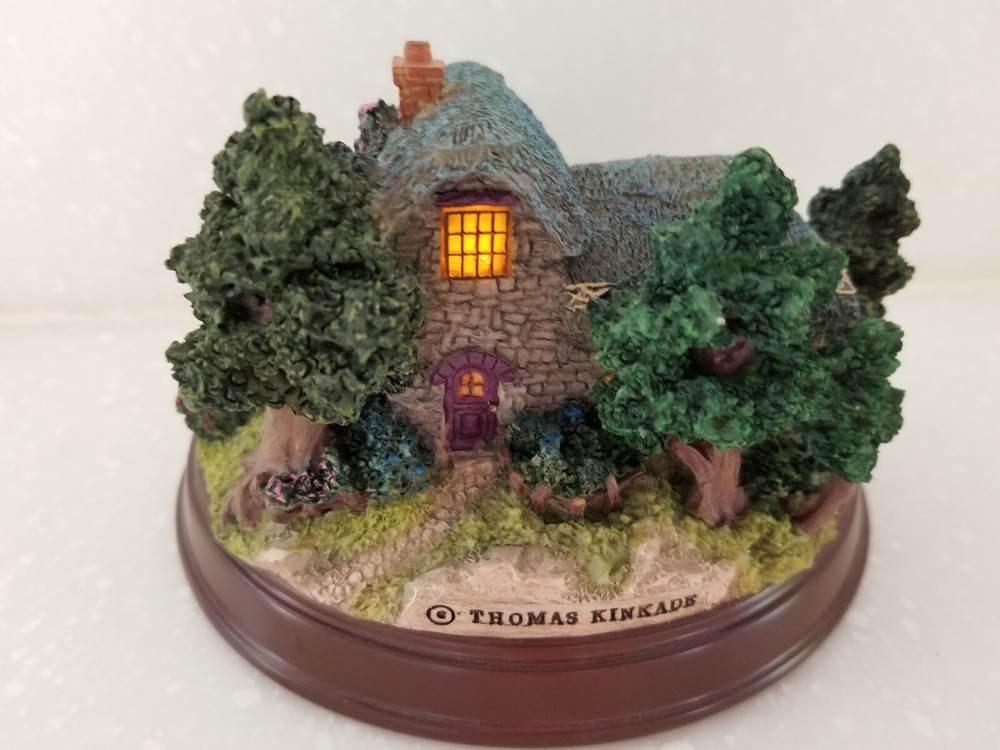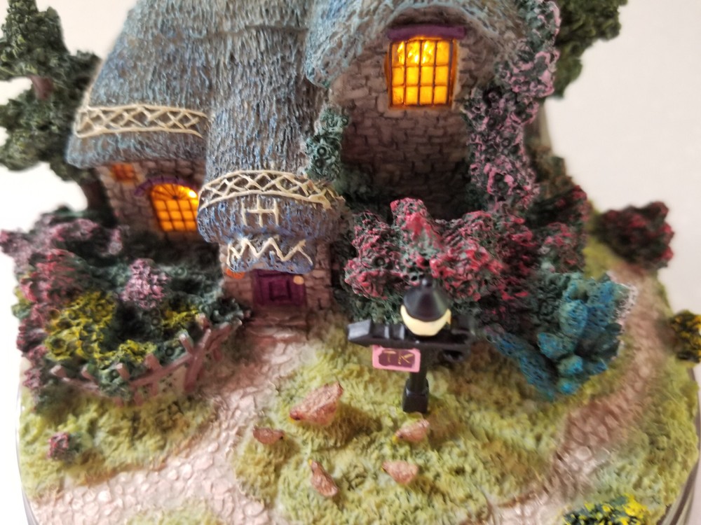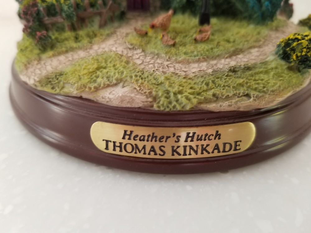 Thomas Kinkade "Painter of Light" Memories of Home "Heather's Hutch" Lighted Cottage Collectible. Pre-owned in excellent condition with no chips or nicks. New batteries. Please view photos.