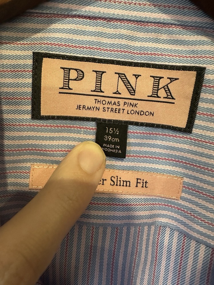 The Thomas Pink Button Up dress shirt in blue and pink stripes is made from 100% cotton, making it a breathable and versatile option for all seasons. This slim fit shirt features a button-down collar, long sleeves, and a woven fabric type with a medium wash. Perfect for formal, business, or travel occasions, this shirt embodies a classic London style with a colorful twist. The Teveller Slim Fit model from Thomas Pink is a high-quality option for men looking for a stylish and comfortable addition to their wardrobe.